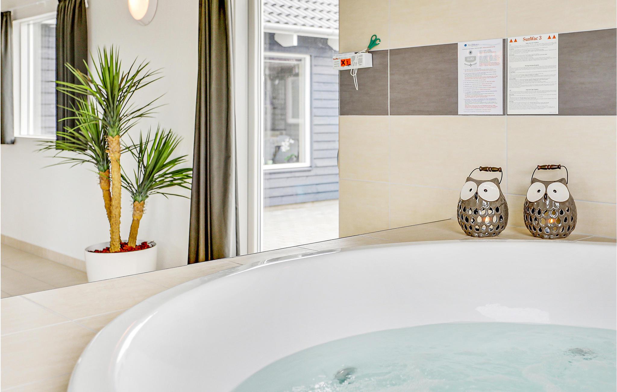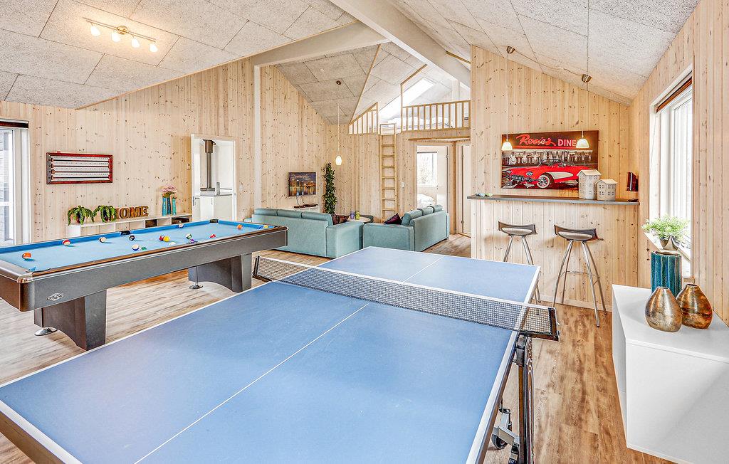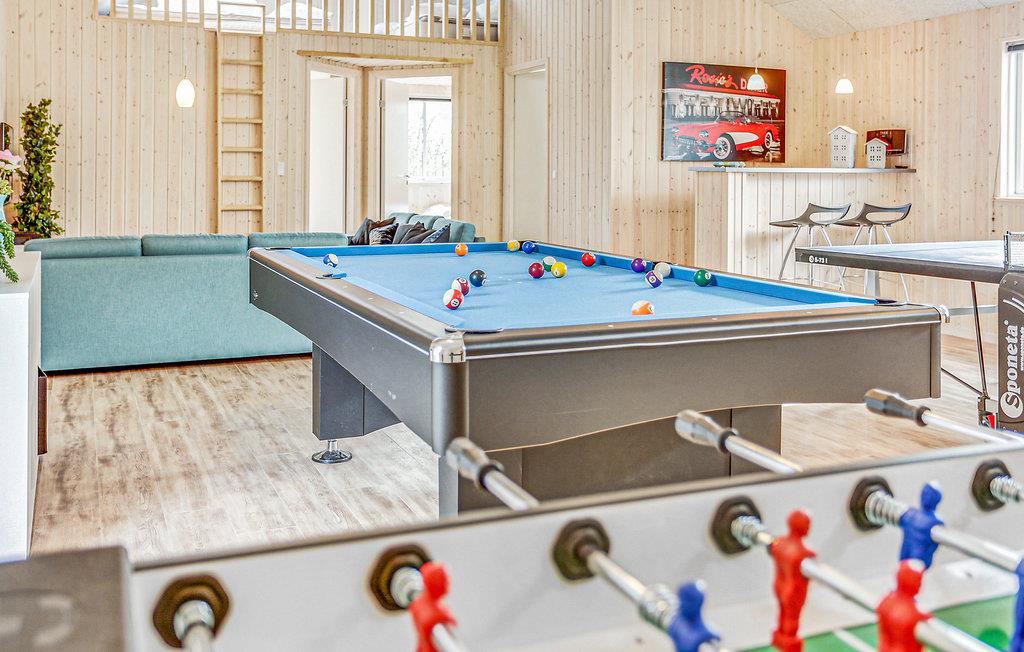 Her er sommerhuset til ferien, der skal være speciel. Huset er indrettet med komfortable, moderne møbler, hvor I rigtig kan slappe af og hygge jer sammen. Her findes et spændende aktivitetsrum med kombineret billard- og poolbord, bordtennis, dart og bordfodbold. Der er også en bar med køleskab, så I kan nyde en kølig forfriskning. Ved den dejlige swimmingpool er der også et seks personers spabad samt adgang til den velgørende sauna - her er wellness i rigt mål. Den skønne store terrasse er møbleret med komfortable møbler, her kan I slappe af på de lange lune sommerdage. Fyn er en dejlig ferieø, i Bogense kan I spadsere langs havnen og marinaen og nyde den maritime stemning. Aconto forbrug og slutrengøring betales kontant i huset sammen med de øvrige forbrugsomkostninger. Sengelinned, håndklæder, barneseng og –stol kan lejes mod betaling på det lokale kontor.