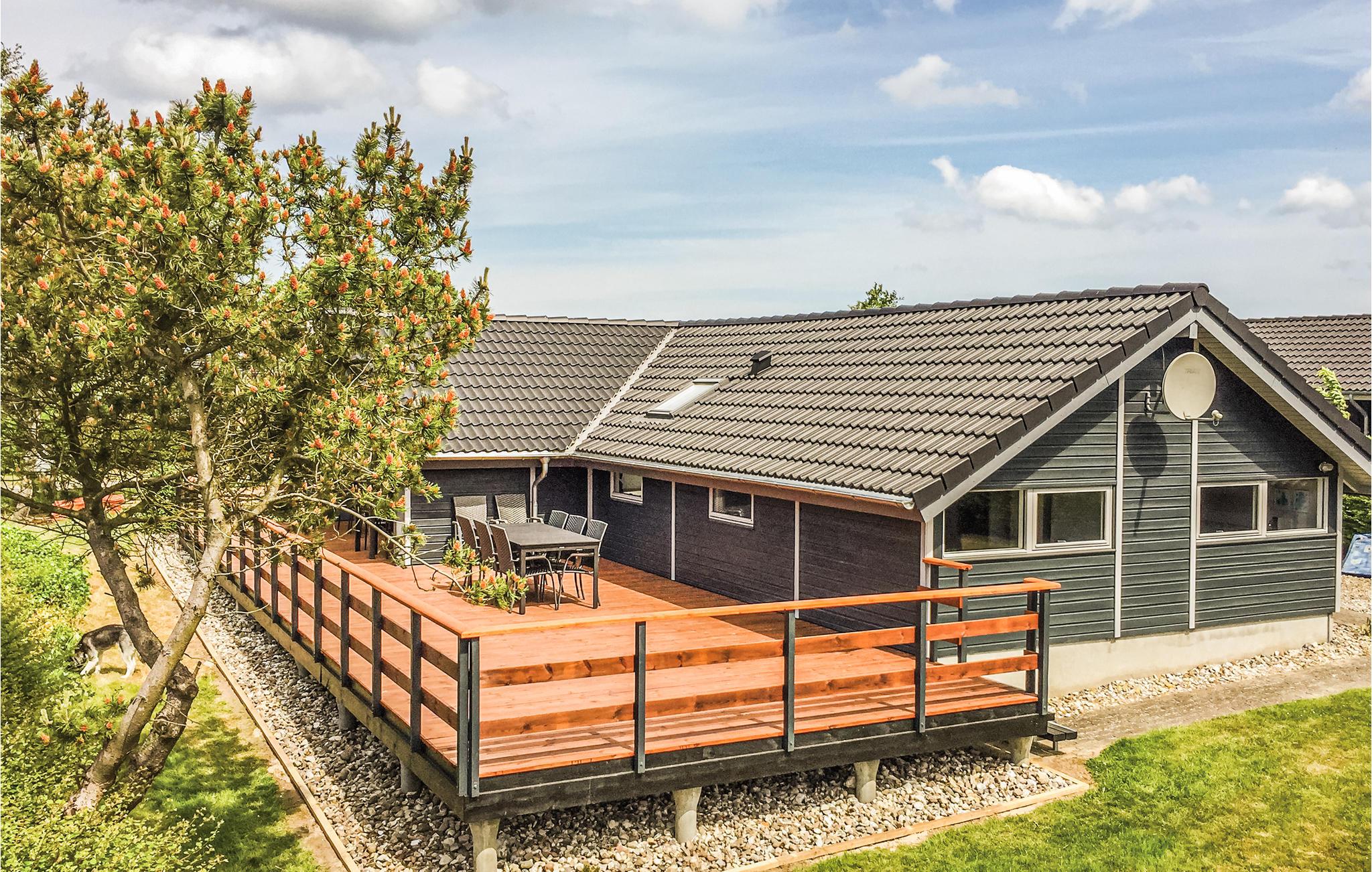 Den lækre, store terrasse indbyder til skønne, afslappende feriedage sammen med familien, hvor børnene kan lege i haven, mens I sidder og læser en god bog. I det dejlige køkken/alrum med loft til kip er der god plads til alle, og på kølige dage kan I tænde op i brændeovnen og nyde den behagelige varme. Køkkenet er veludstyret med alt hvad I skal bruge i løbet af ferien.