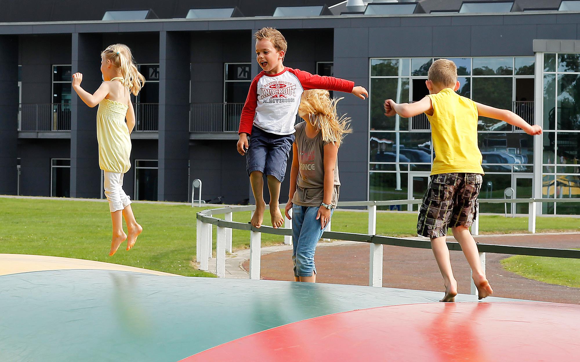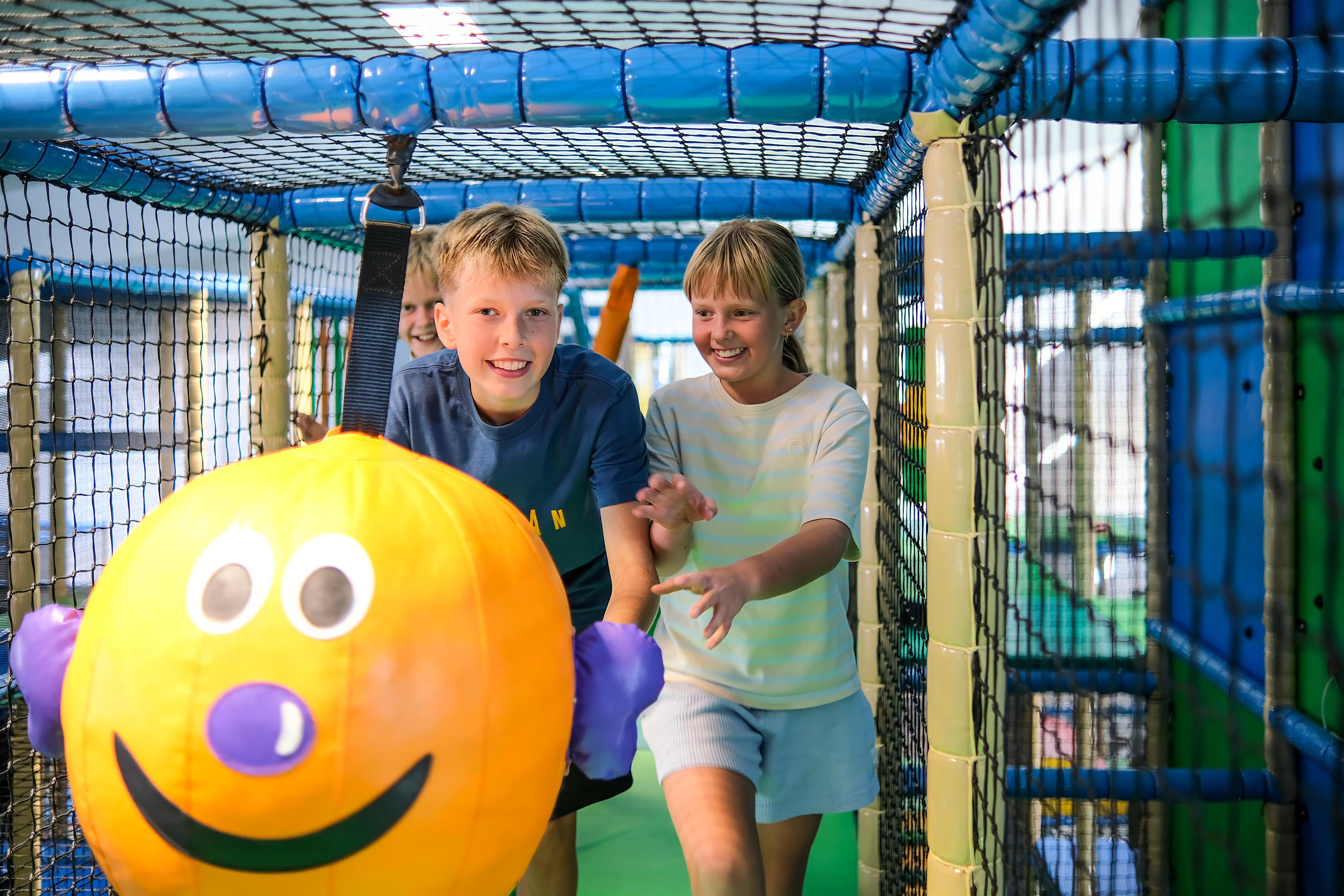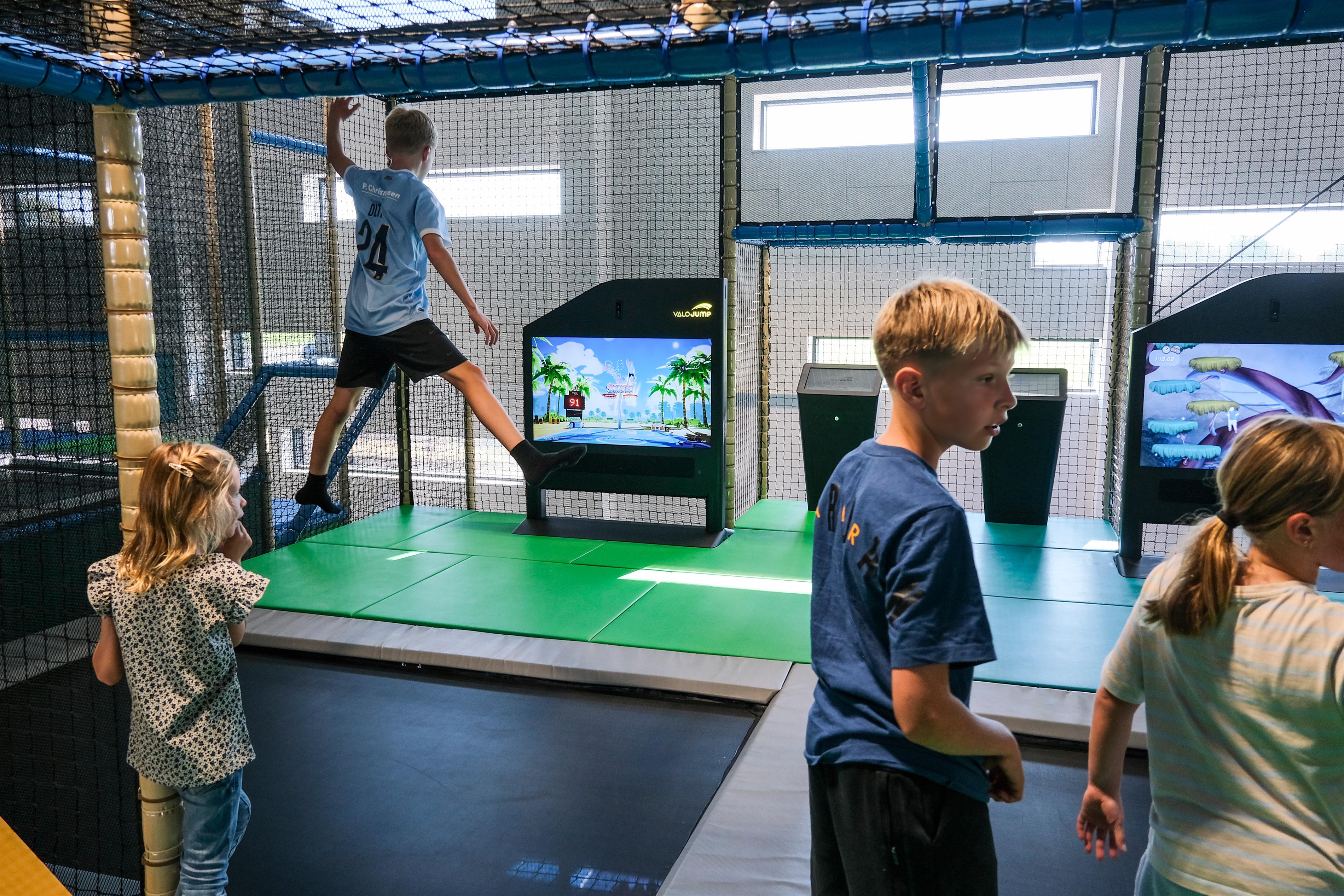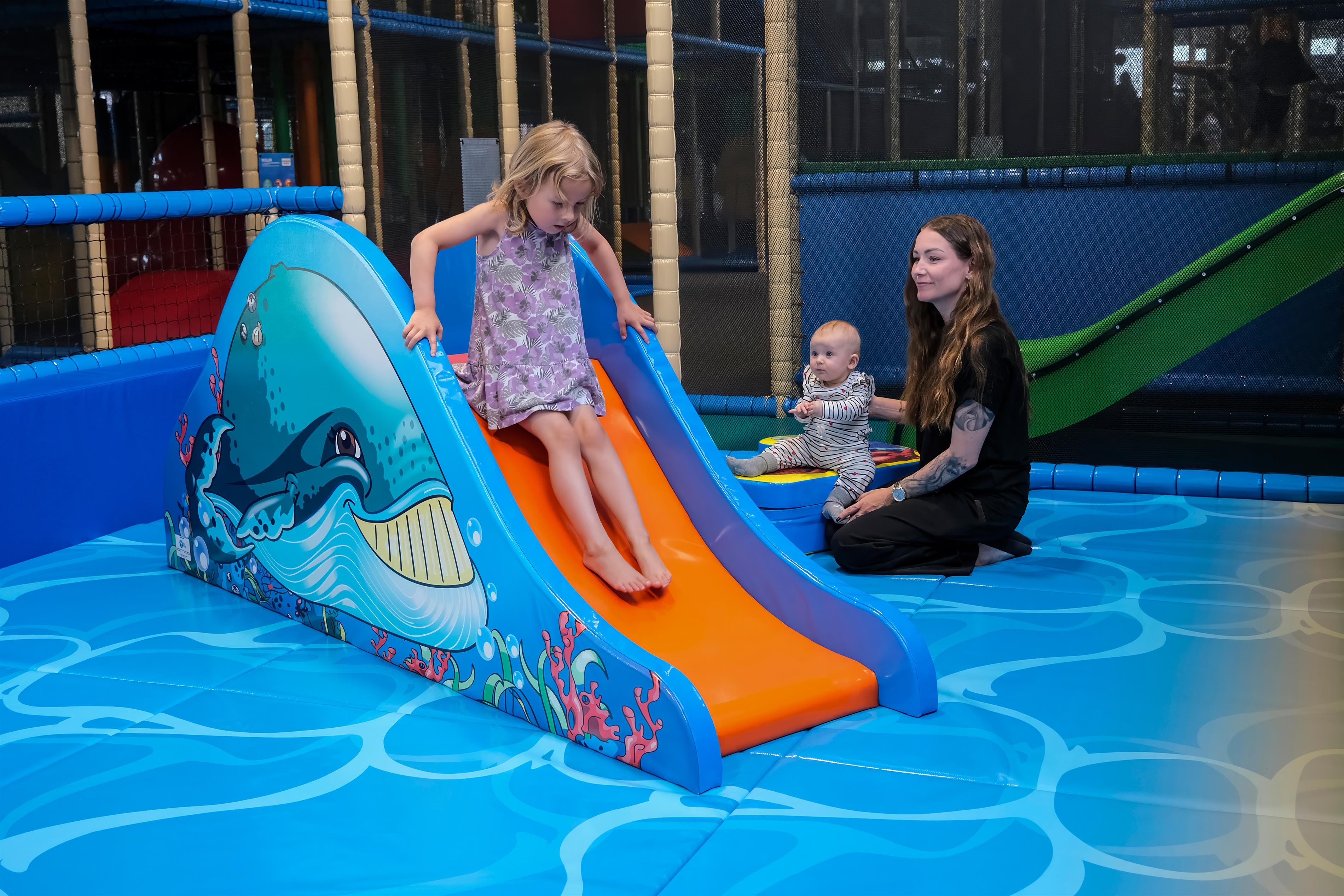 - Indendørs legeland på hele 700 m² – et farverigt og fantasifuldt univers fyldt med klatrestativer, trampoliner, rutsjebaner, boldbaner og interaktive spil