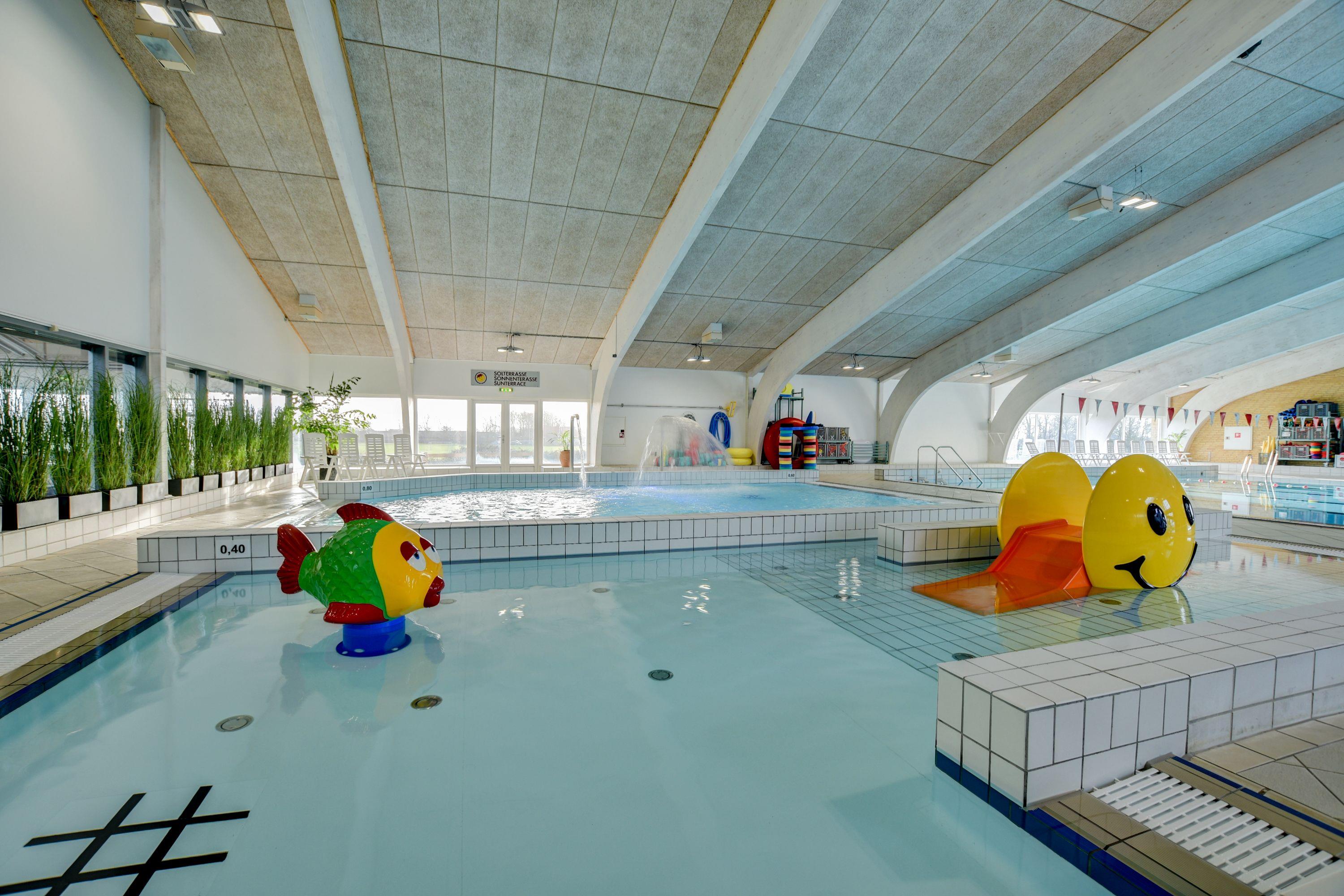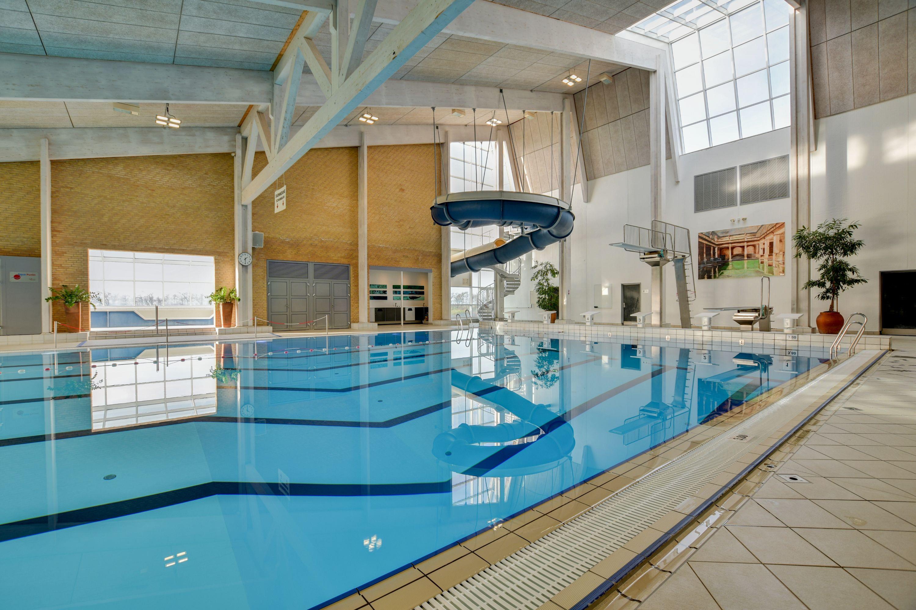 - Svømmehal med 53 m vandrutsjebane, 1- og 3-meters vipper, 25 m bassin (28°), varmtvandsbassin og børnebassin (33°), Jacuzzi, dampbad og sauna (saunagus tilbydes i vinterhalvåret)