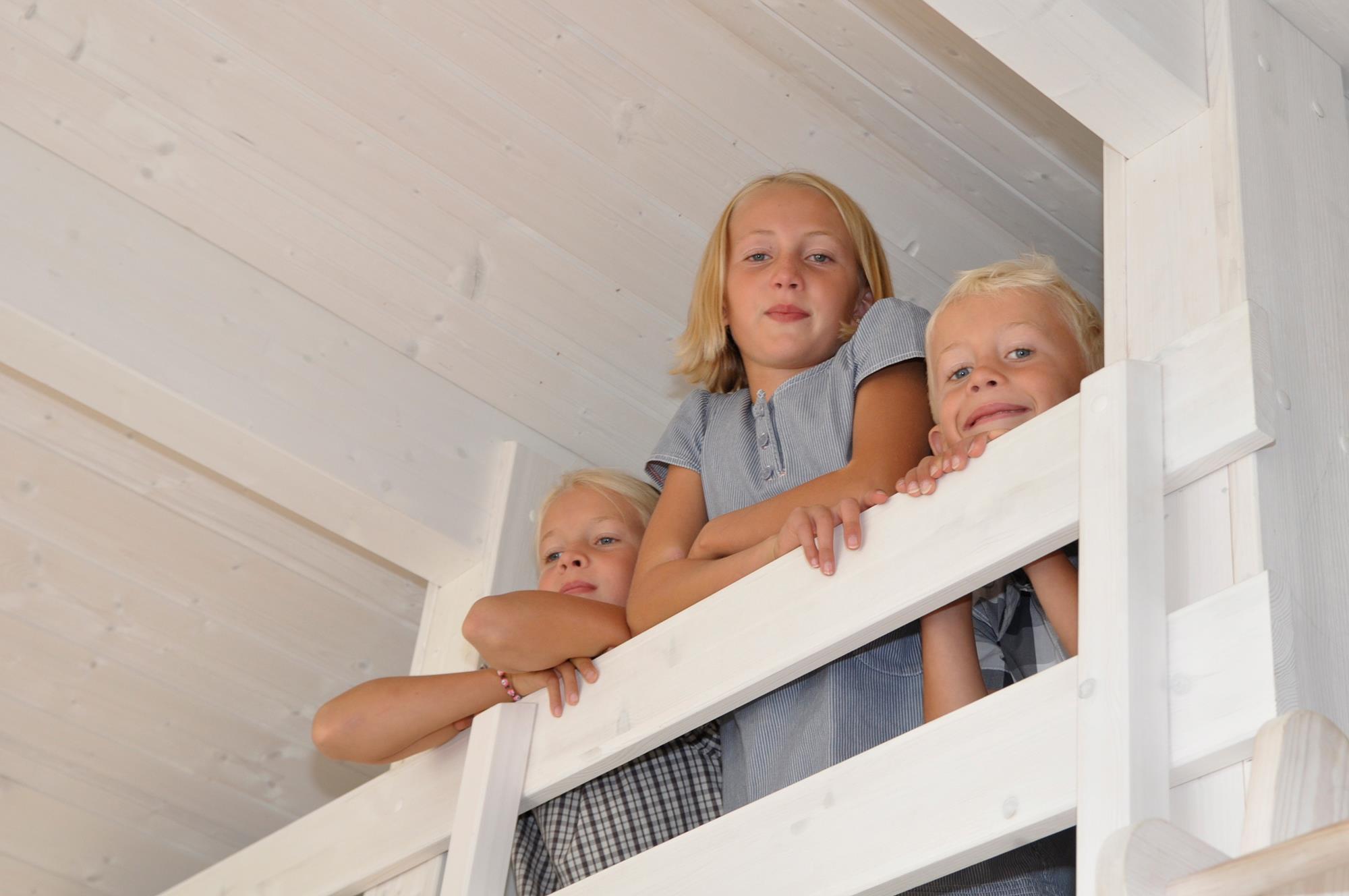 - Hemse med 3 madrasser (lav loftshøjde – perfekt til børn)