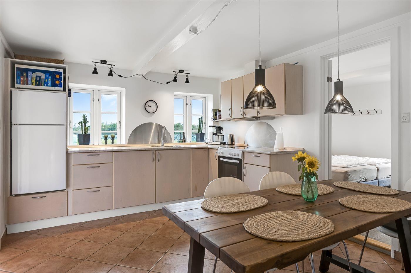 Køkkenet er udstyret med 1 køleskab. Der er 4 keramiske kogeplader, varmluftovn, mikrobølgeovn.