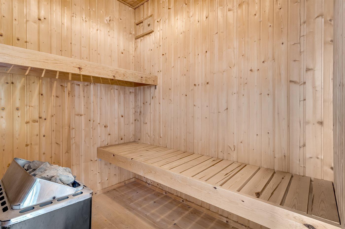 Der er 2 badeværelser med bruseniche og 1 toilet.. Der er gulvvarme på 1 badeværelse. I saunaen er der mulighed for afslapning.
