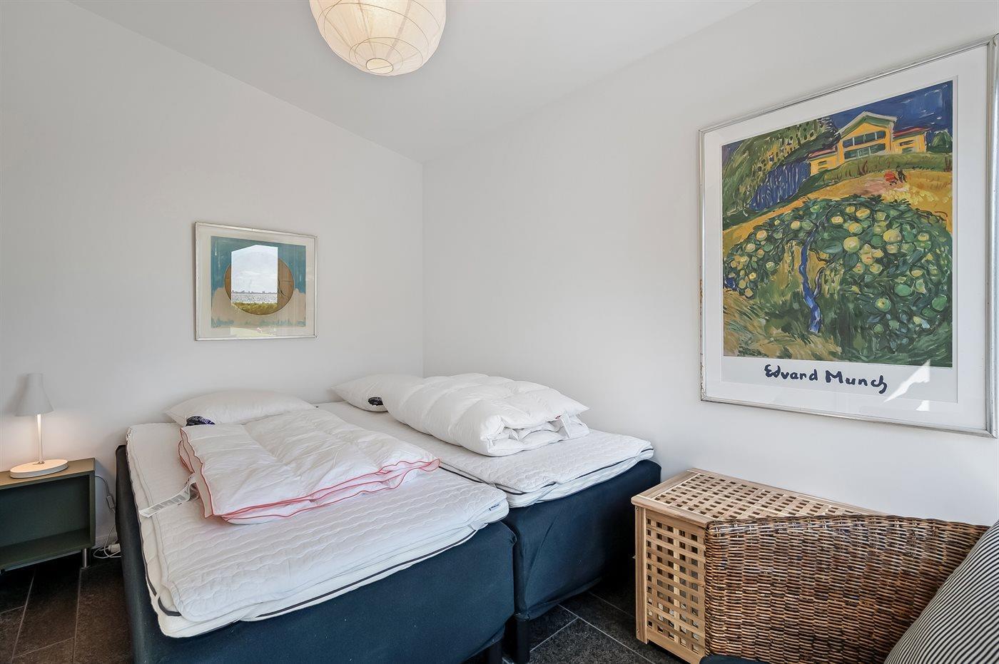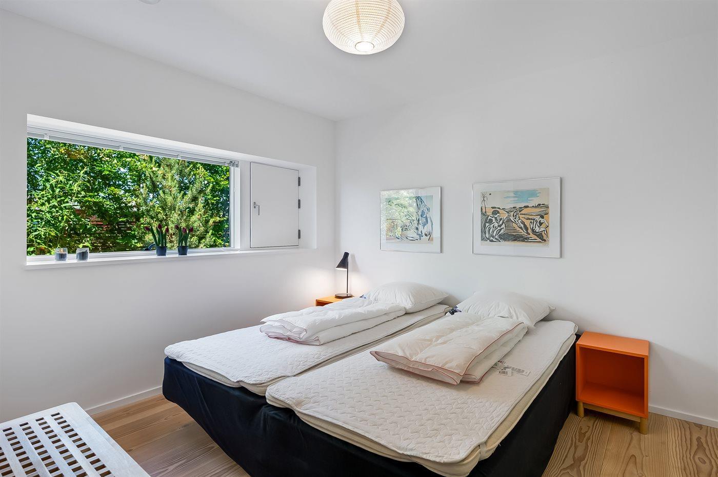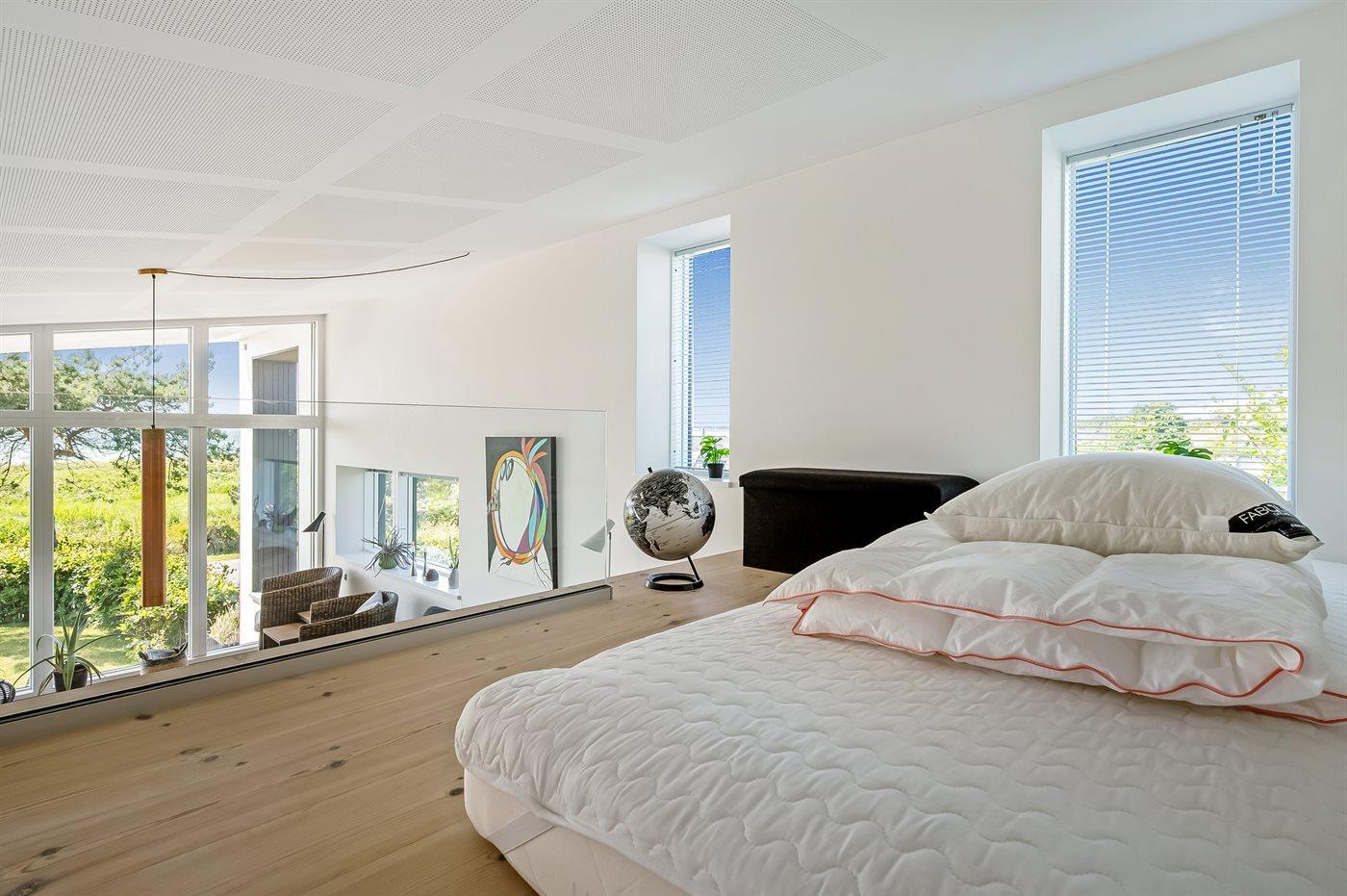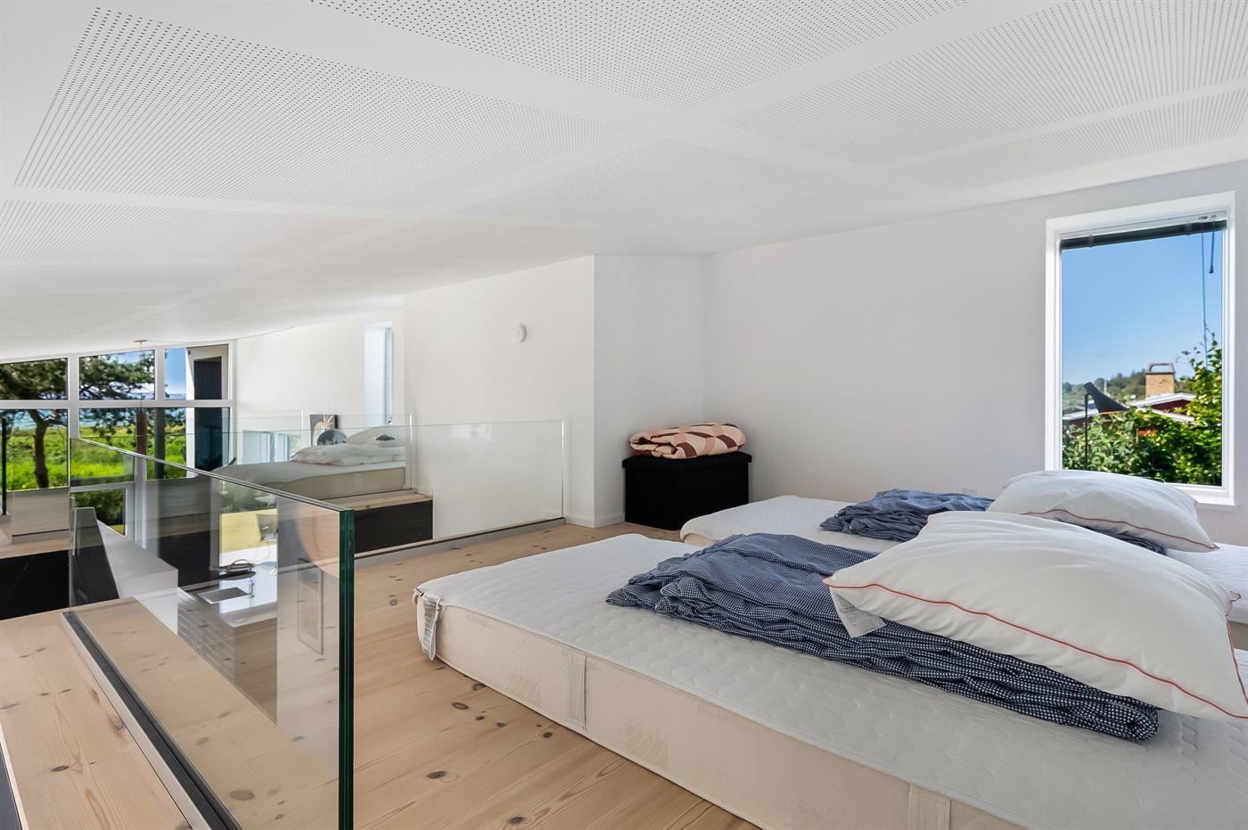 Der er i alt 3 soveværelser. Sovepladserne fordeler sig på: 4 sovepladser i dobbeltsenge. 2 sovepladser i sovesofa (dobbelt). 3 sovepladser på madrasser. 3 af disse sovepladser befinder sig på husets hems.