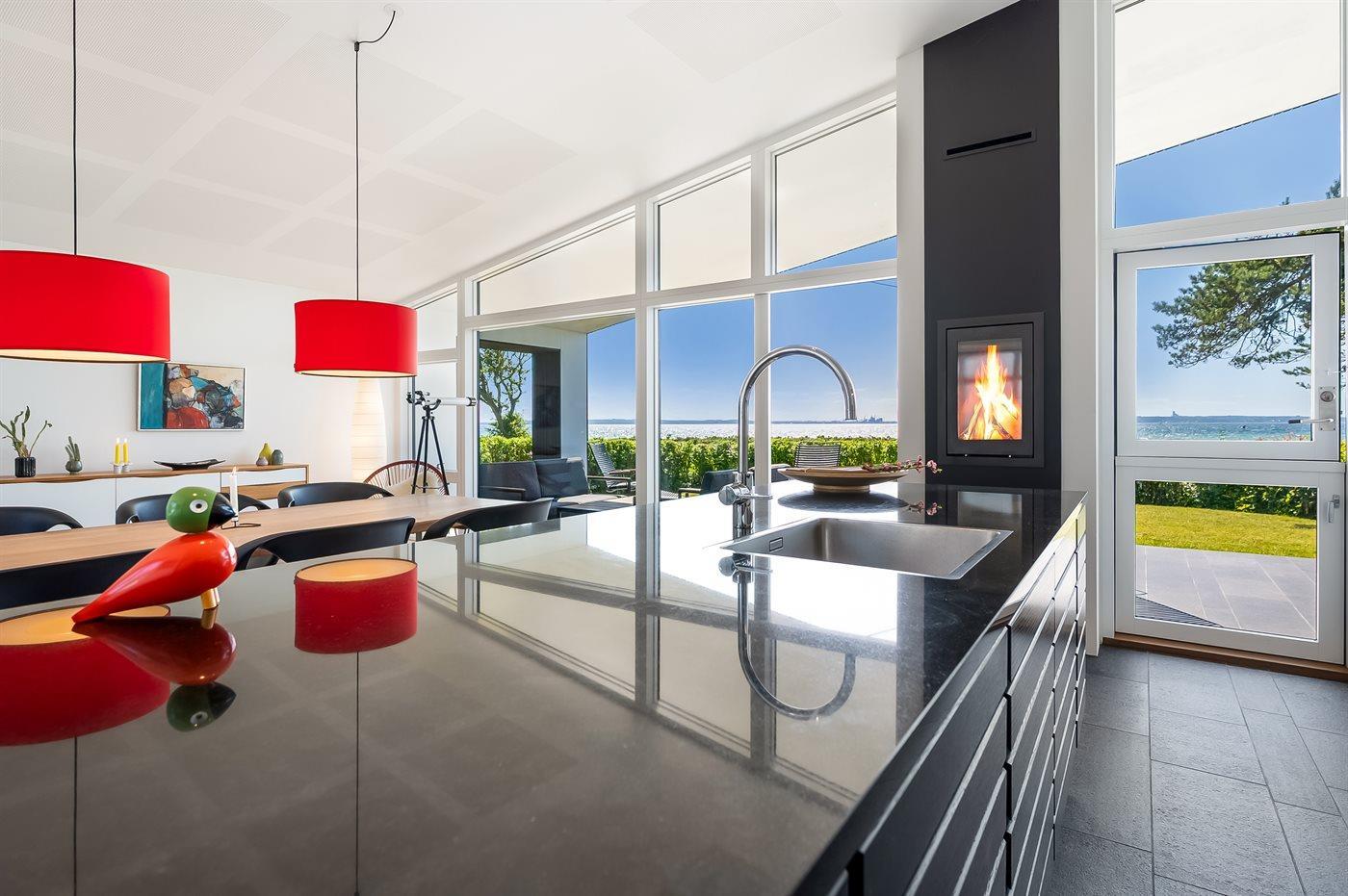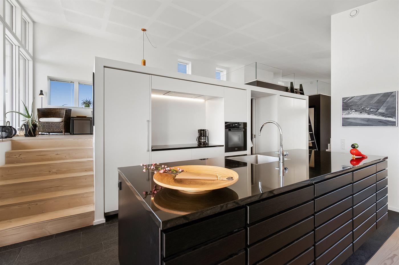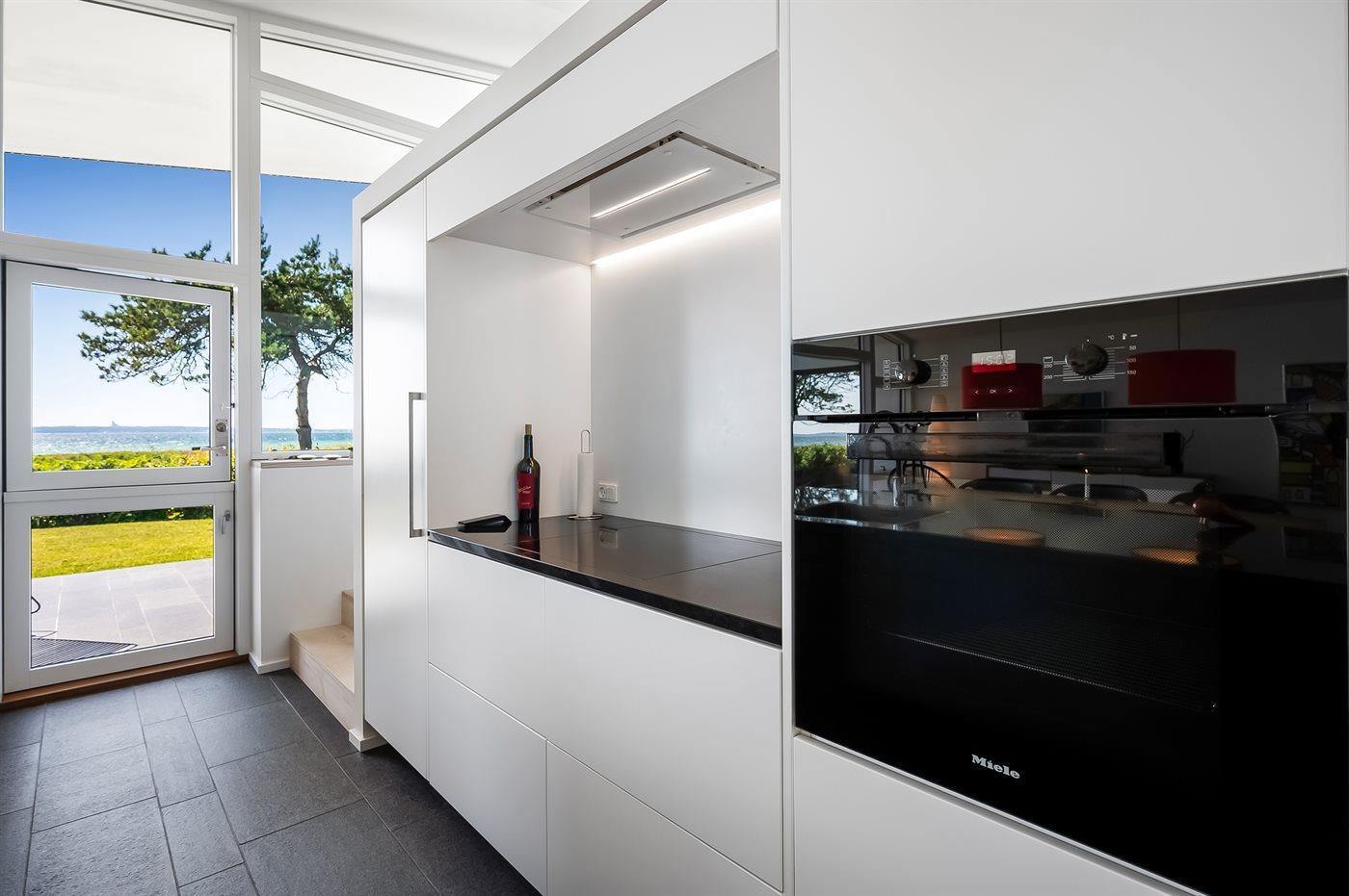Køkkenet er udstyret med 1 køleskab. Der er 4 induktionskogeplader, varmluftovn, mikrobølgeovn samt opvaskemaskine.