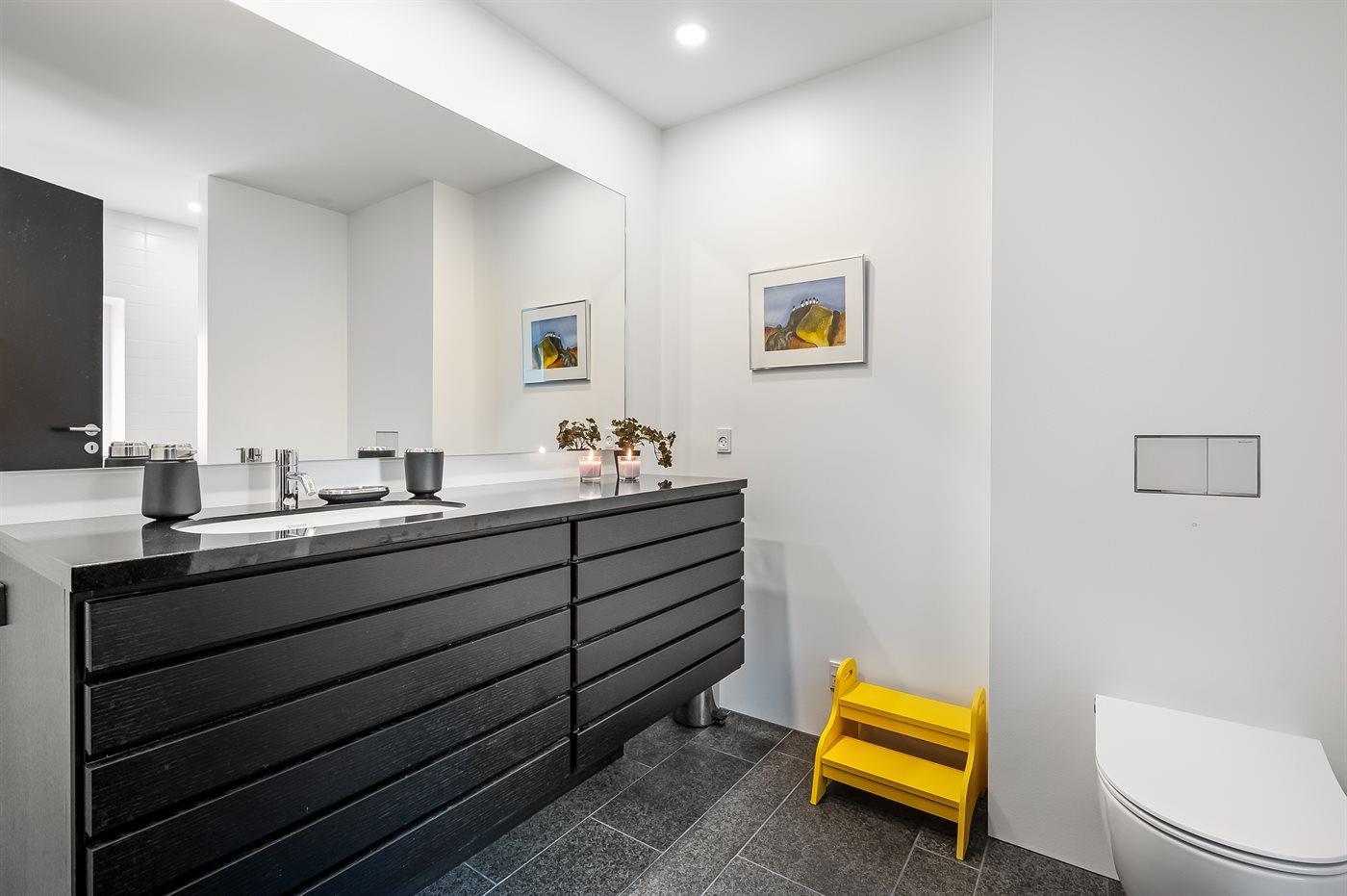 Der er 2 badeværelser med bruseniche og 2 toiletter. Der er gulvvarme på 2 badeværelser.