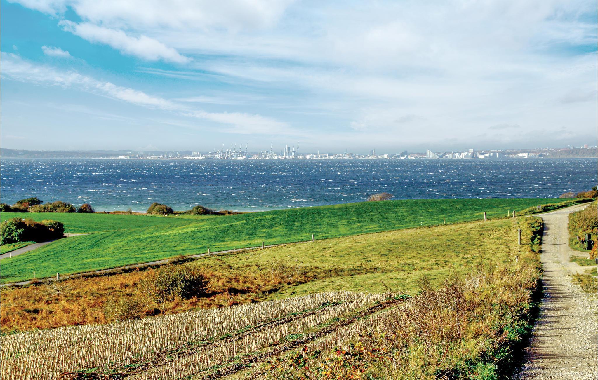 Hyggeligt træhus nær børnevenlig strand og Nationalpark Mols Bjerge, perfekt til afslappende ferie i naturskønne omgivelser.
