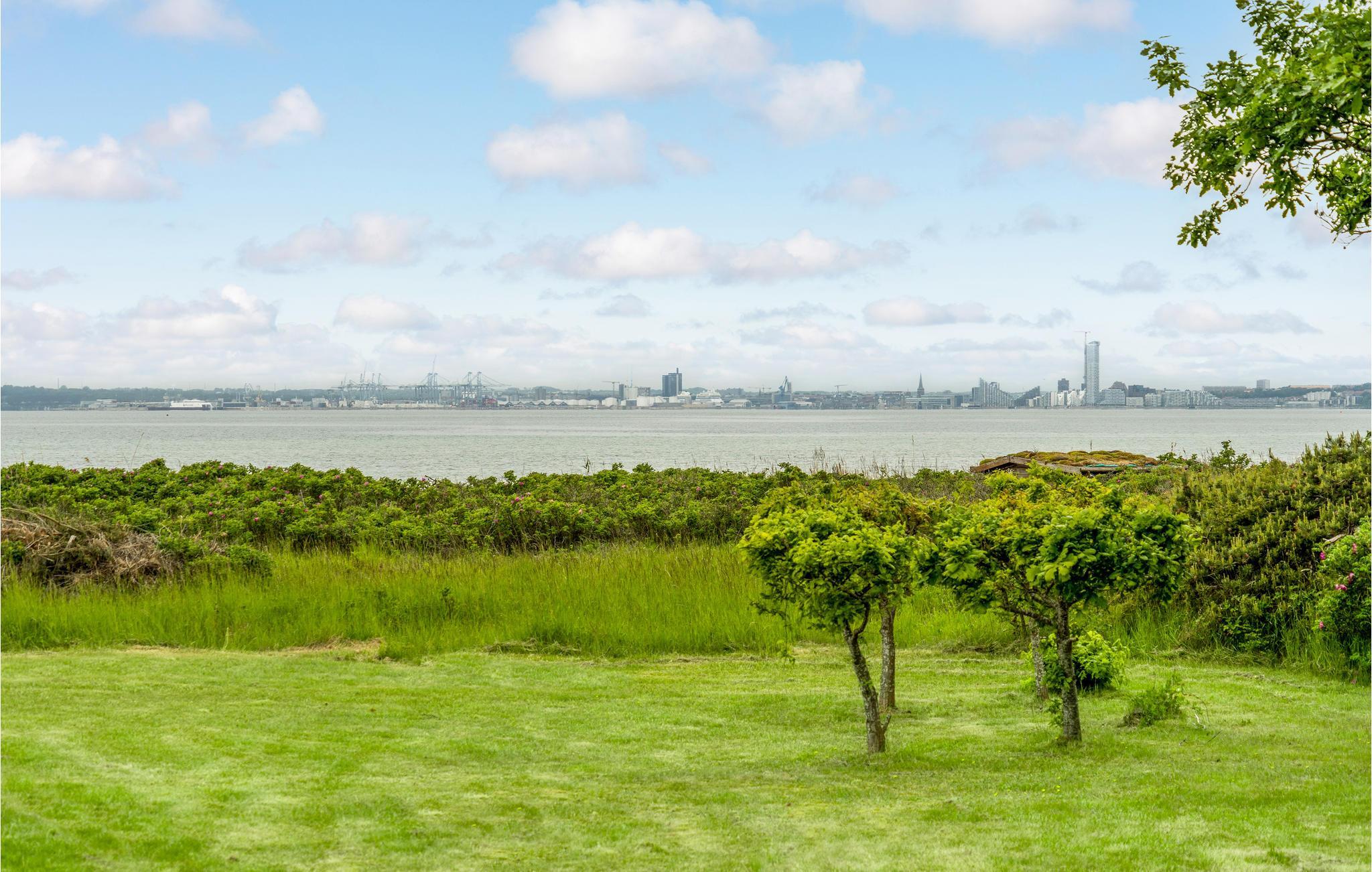 Skønt feriehus i første række til vandet med panoramaudsigt og børnevenlig strand ved Skødshoved Strand.