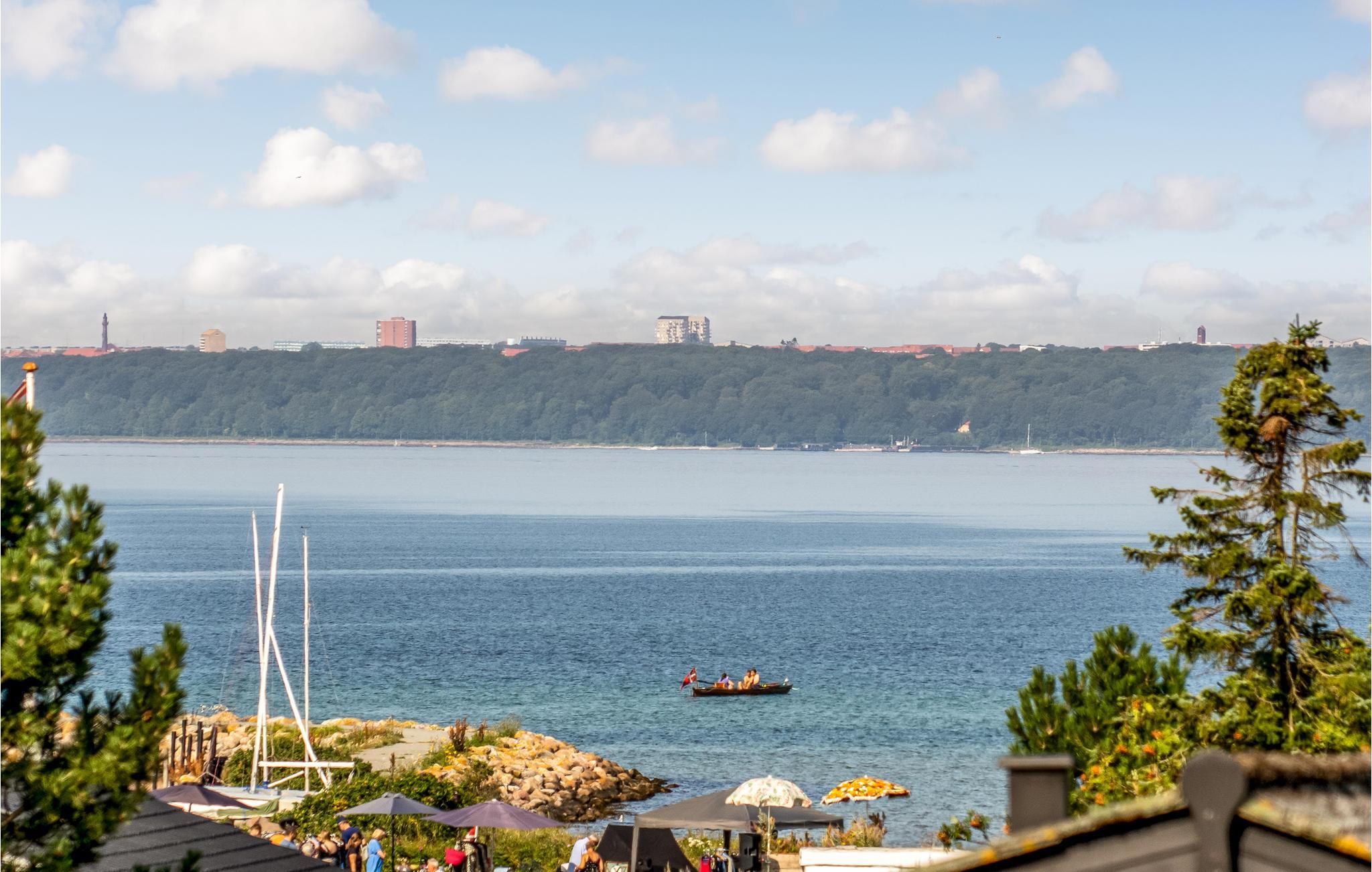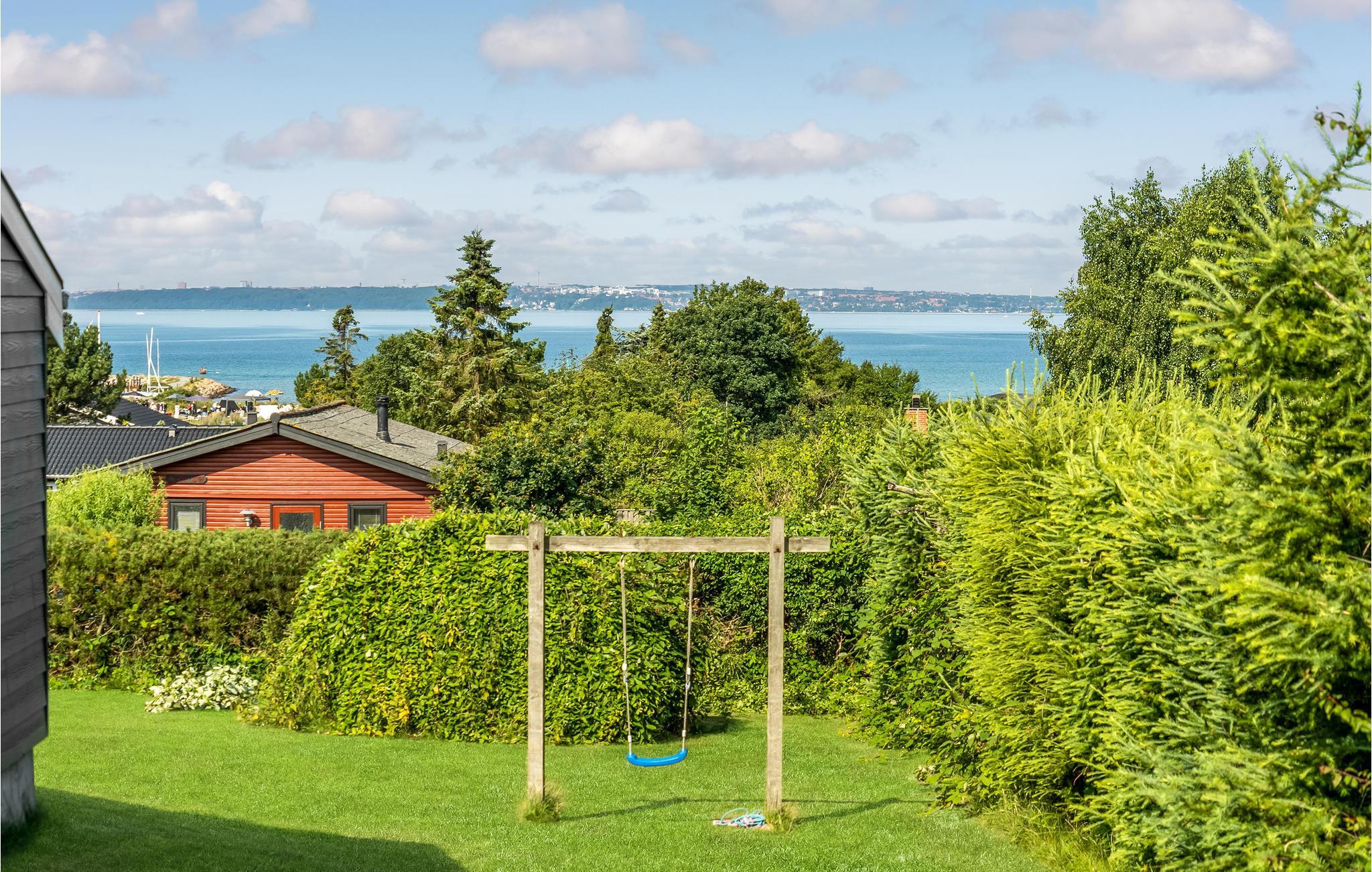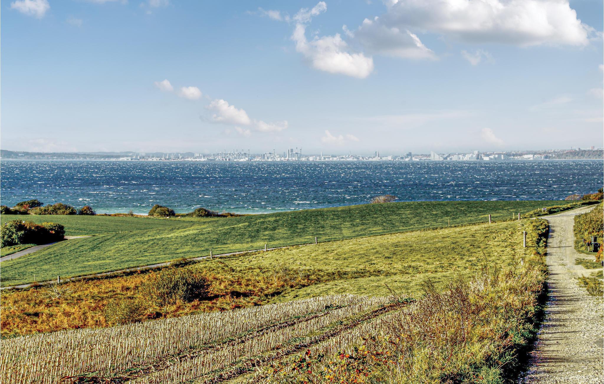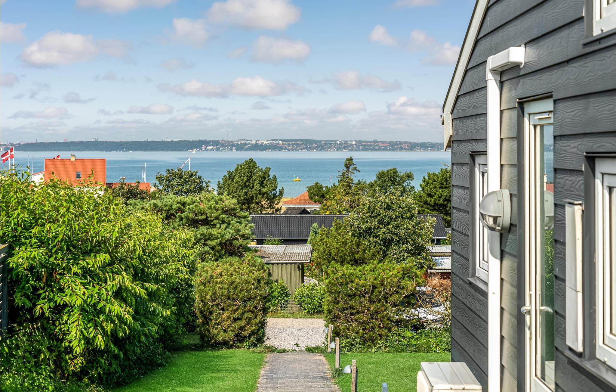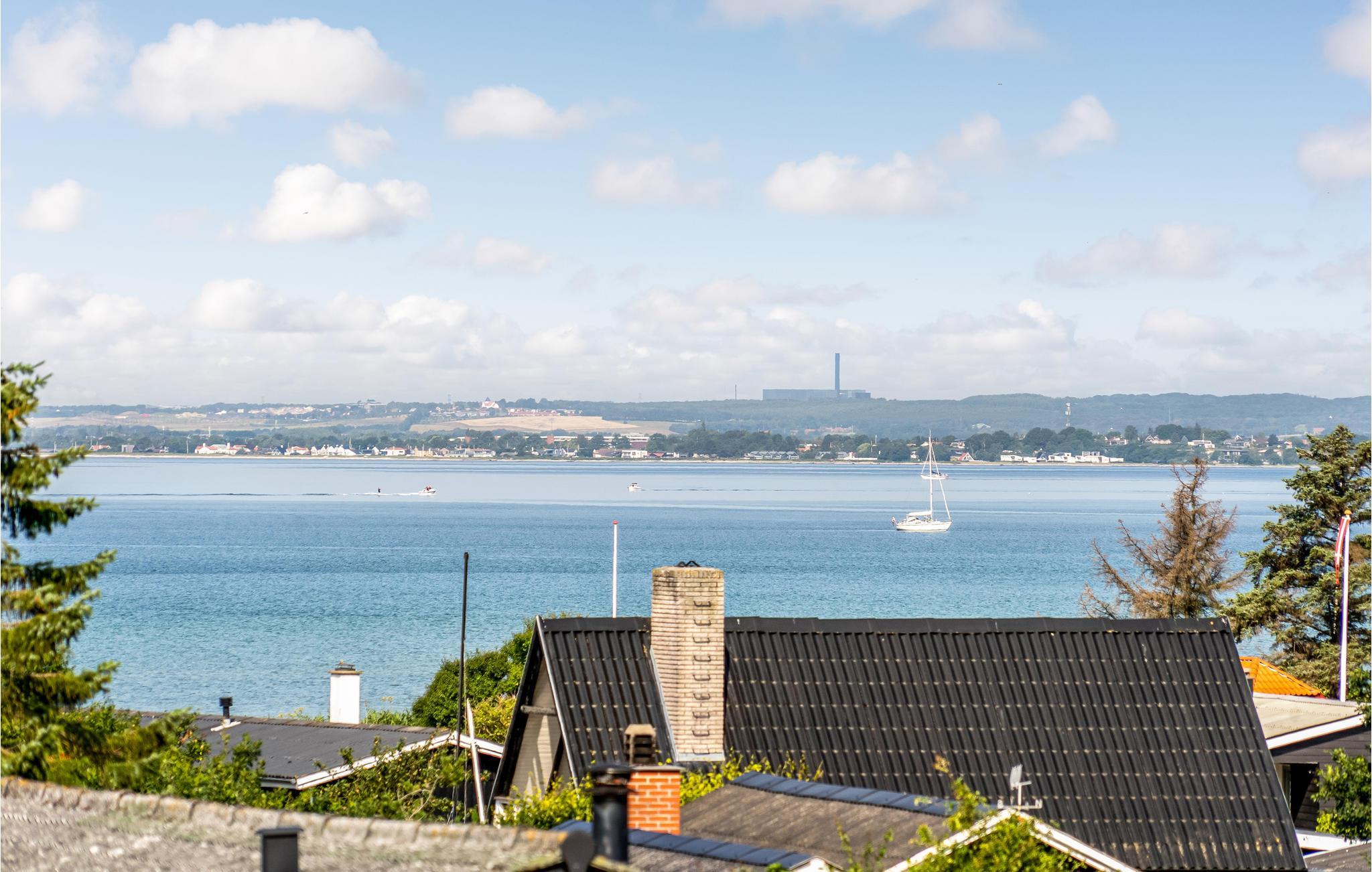 Feriehus med swimmingpool og panoramaudsigt over havet tæt på Skødshoved Strand.