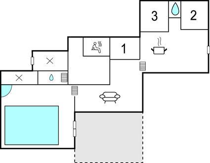 Badeværelse 6m2 (nr. 1) - WC. Varmt og koldt vand. Bruser
