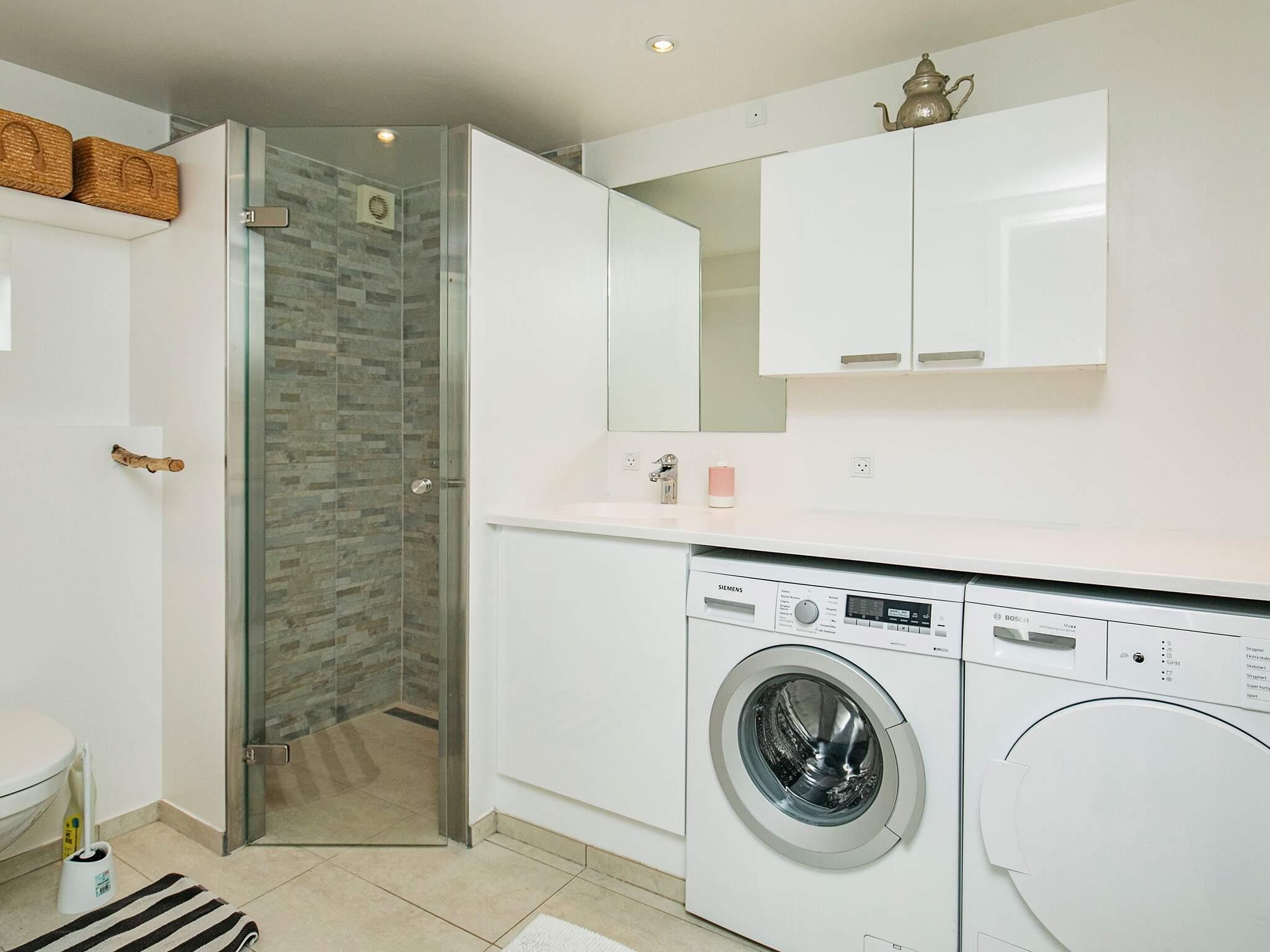 Bad/wc: Vaskemask., tørretumbler, wc, håndvask, bruseniche, gulvvarme