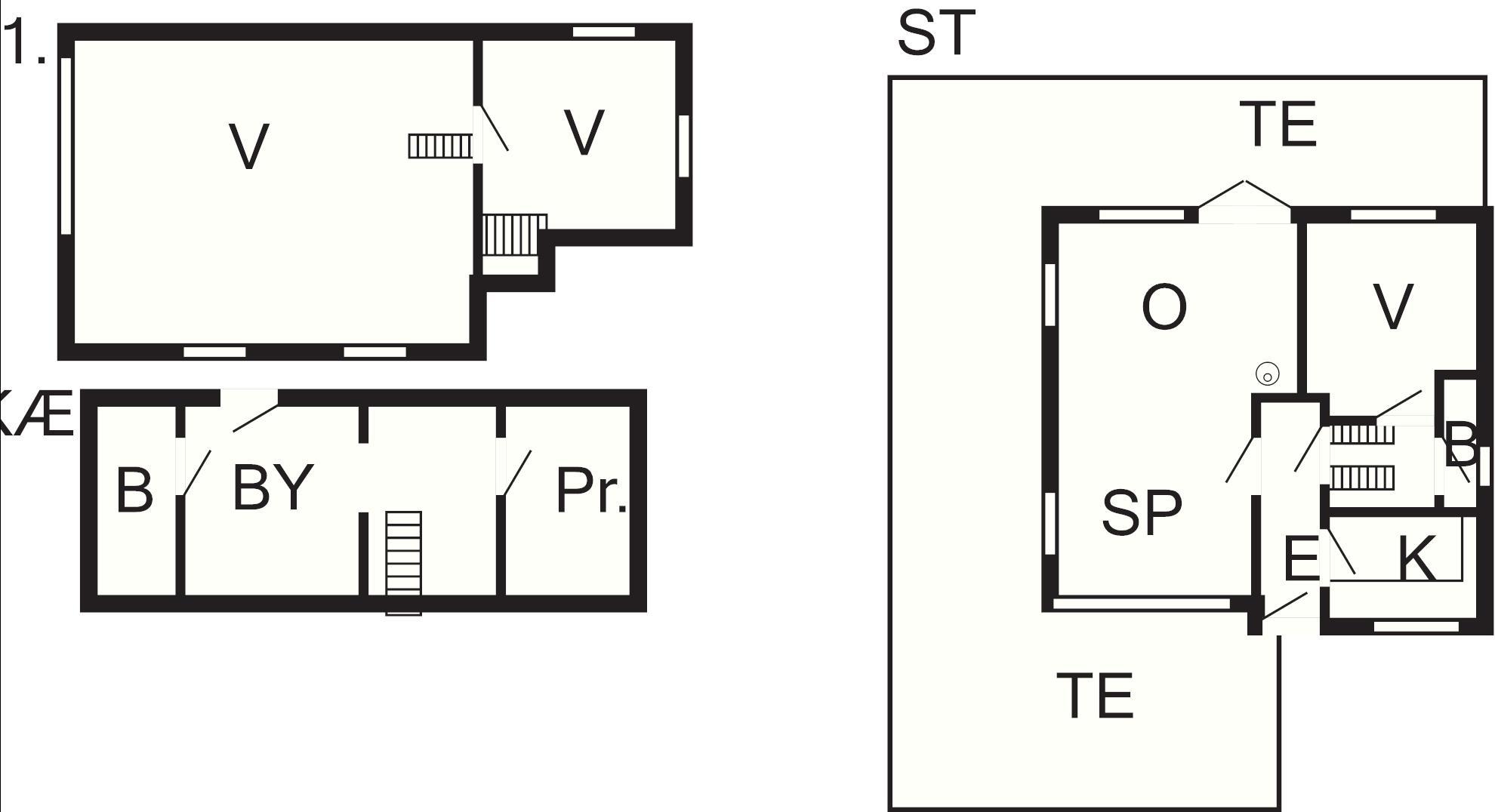 1 Opholdsstue: Brændeovn, radio, stereoanlæg med cd, dvd-afspiller, tv, kabel-tv