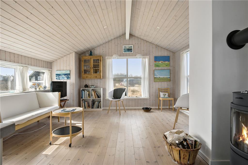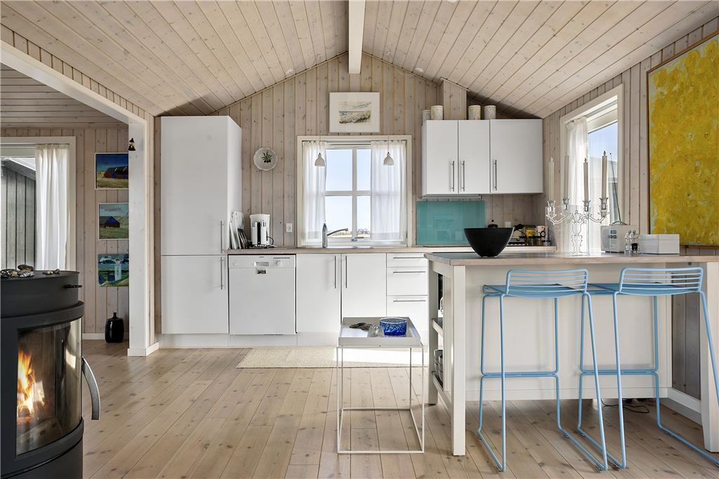 Når du træder indenfor i dette sommerhus, bliver du mødt af en gennemført lys og luftig atmosfære. De store vinduespartier inviterer naturen helt ind i stuen og skaber et harmonisk samspil mellem ude og inde. Huset er indrettet med fokus på æstetik og komfort, og den moderne stil komplementeres af hyggelige detaljer som en brændeovn, der indbyder til afslapning efter en dag i den friske havluft. Det åbne køkken ligger i naturlig forlængelse af stuen, så der er god mulighed for at være sammen om madlavningen og samtidig nyde udsigten til naturen. Soveværelserne er indrettet med enkelhed og elegance, der gør det let at finde ro og lade op til endnu en skøn feriedag.