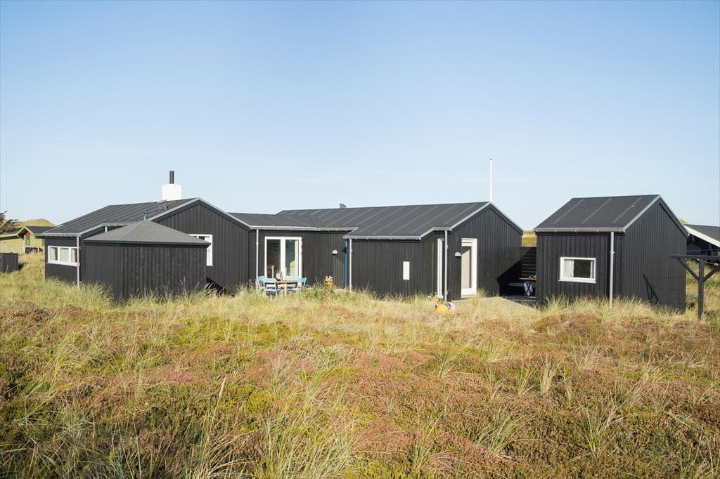 Sommerhuset er omgivet af en uspoleret naturgrund, hvor træer og lyng skaber en privat oase. Her kan du nyde livet under åben himmel, uanset om du foretrækker at sidde på terrassen med en kop kaffe eller strække dig i en liggestol med en god bog. Den rummelige terrasse er ideel til lange, hyggelige middage med familien, og når mørket falder på, kan du nyde stjernehimlen i den stille natur. Den korte afstand til Vesterhavet gør det oplagt at starte dagen med en morgendukkert eller slutte den med en gåtur langs strandens bølger.