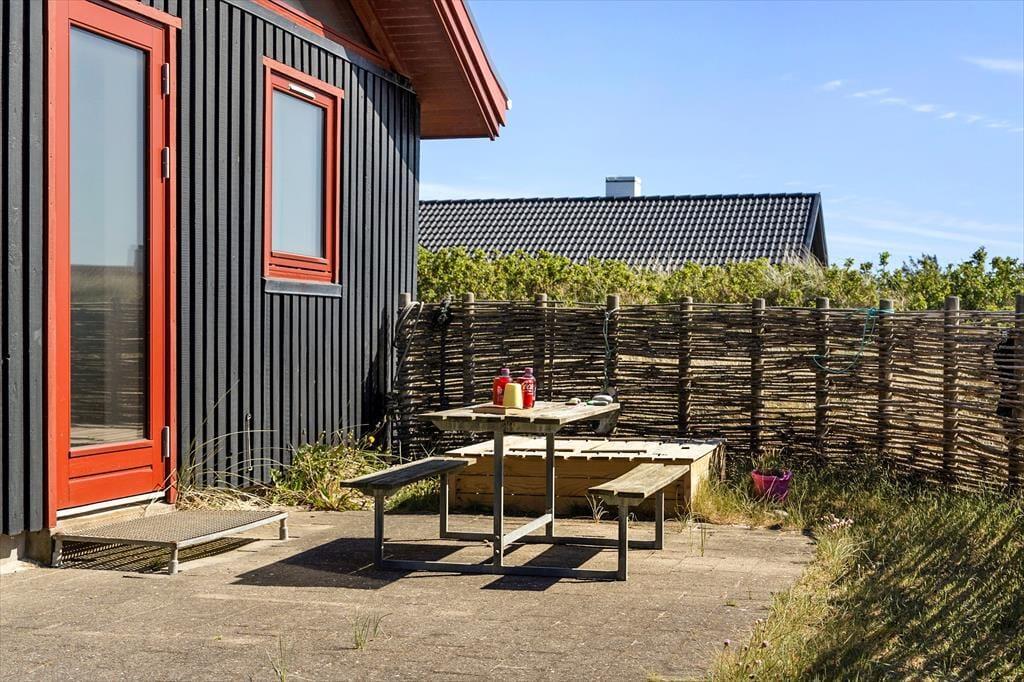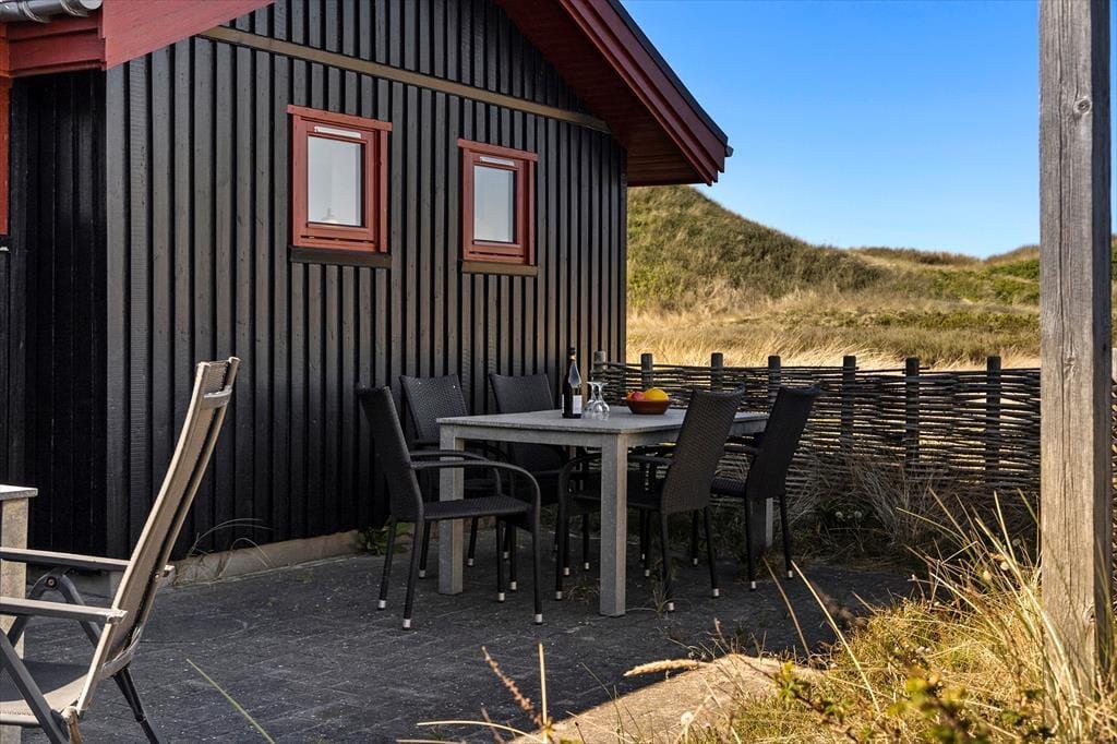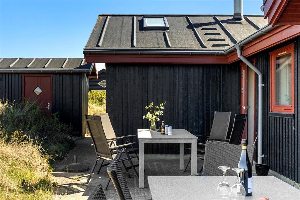 Sommerhuset tilbyder to dejlige terrasser, som gør det muligt at nyde solen fra morgen til aften. Den ene terrasse er perfekt til en stille morgenkaffe, mens den anden er ideel til middag og grillhygge om aftenen. Begge terrasser giver plads til at strække benene, slappe af i liggestole og nyde den friske luft, mens du hører bølgerne og fornemmer den salte havluft. Den store græsplæne omkring huset giver plads til både afslapning og leg – her kan børnene løbe rundt og udfolde sig, mens de voksne nyder de rolige omgivelser. Det er svært ikke at føle sig hjemme her, hvor alt inviterer til afslapning og samvær.