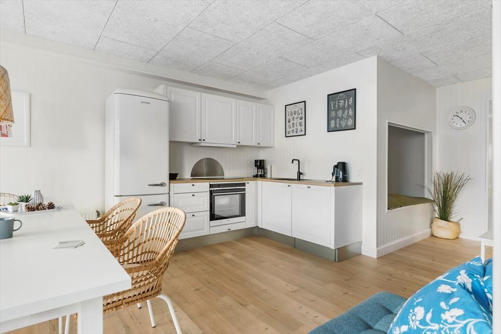 Ferielejligheden byder dig velkommen med lyse og indbydende rum, hvor du straks mærker en hjemlig og afslappet atmosfære. Den hyggelige alcove er perfekt til at trække sig tilbage med en god bog eller tage en lille lur efter en dag fyldt med nye indtryk. Stuen er indrettet med komfortable møbler og store vinduer, som lukker det naturlige lys ind og skaber en behagelig atmosfære. Køkkenet er praktisk indrettet og ligger i forlængelse af spiseområdet, hvilket gør det nemt at samle sig til måltider og hyggelige stunder. Ferielejligheden er ideel til dig, der ønsker en rolig base, men stadig vil have nem adgang til by