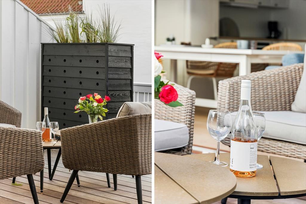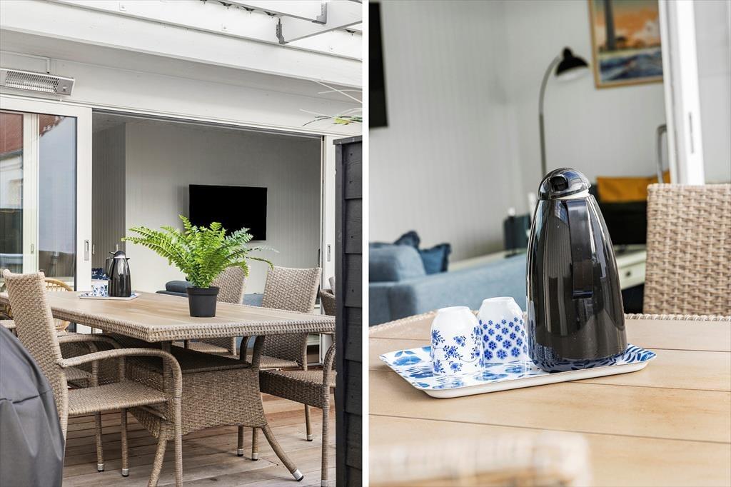 Den lille, hyggelige terrasse giver dig mulighed for at nyde feriedagene udendørs. Her kan du starte dagen med en kop kaffe i morgensolen eller afslutte aftenen med en god middag i det fri. Terrassen har siddepladser, hvor du kan slappe af og lade freden sænke sig, mens du lytter til fuglesang og nyder den skønne, nordjyske luft. Den intime atmosfære og den rolige beliggenhed gør det nemt at finde feriestemningen og bare være til stede i nuet.