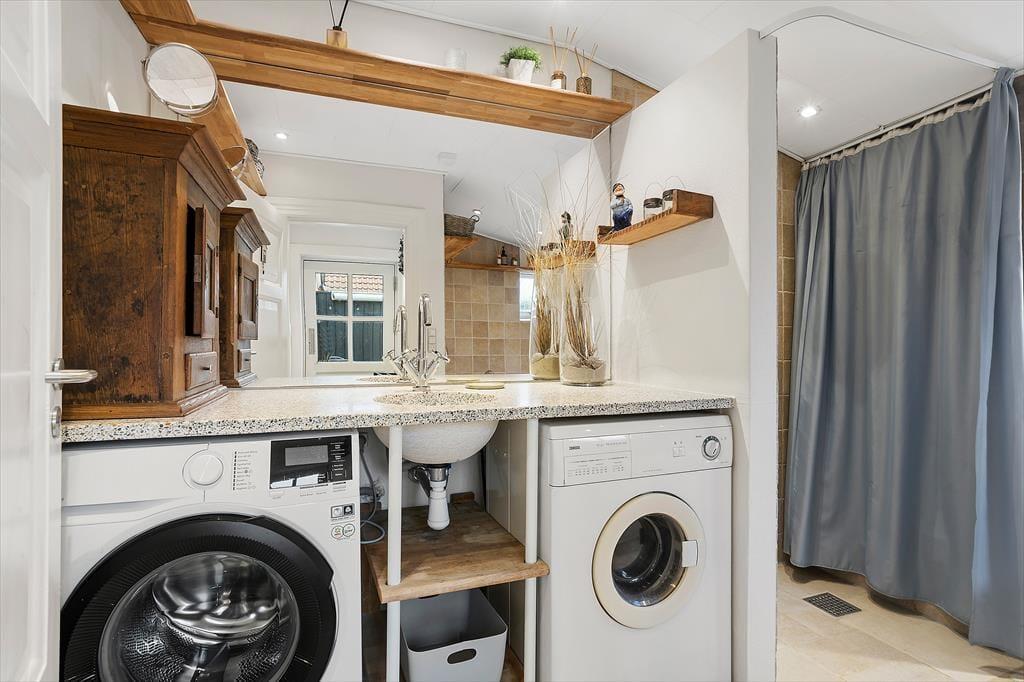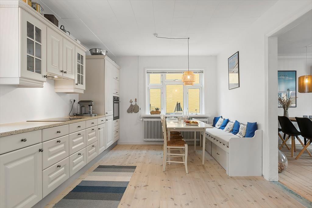 Indenfor mødes du af en lys og hyggelig indretning, der med det samme inviterer til afslapning og fællesskab. Sommerhuset har en venlig og hjemlig atmosfære, og det er let at forestille sig lange, dovne morgener rundt om spisebordet og stille aftener med spil, grin og samtaler i sofaen. I køkkenet er ligeledes et stort bord placeret, så det er nemt at være sammen, mens maden tilberedes. Det store badeværelse byder på både god plads og et dejligt badekar, der indbyder til afslapning efter en lang dag i byen eller på stranden. I hovedhuset er der gode sovepladser til flere, og det charmerende anneks i gårdhaven har både dobbeltseng og eget toilet, hvilket gør det ideelt til bedsteforældre, teenagebørn eller det vennepar, der måske er med på ferie. Bemærk dog, at toilettet i annekset ikke kan benyttes i perioden fra 1. november til 1. april.