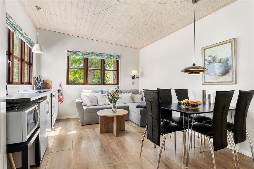 Allerede når I træder indenfor, bliver I mødt af husets varme og komfortable atmosfære. Indretningen er præget af charme og hjemlig hygge med små detaljer, der får jer til at føle jer godt tilpas fra første øjeblik. Det veludstyrede køkken gør det nemt at samles omkring madlavningen – måske med lokale råvarer fra torvet i Skagen – og de fælles opholdsrum lægger op til brætspil, samtaler og afslappede aftener med en god film eller bog. Selvom huset emmer af autentisk byhusidyl, er det udstyret med alt det, der skal til for at gøre ferien komfortabel for både store og små – og for både morgenmennesker og natteravne. Her kan I finde sammen i fællesstuerne, men også trække jer tilbage og nyde roen i jeres eget tempo.