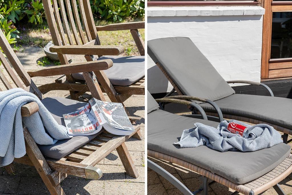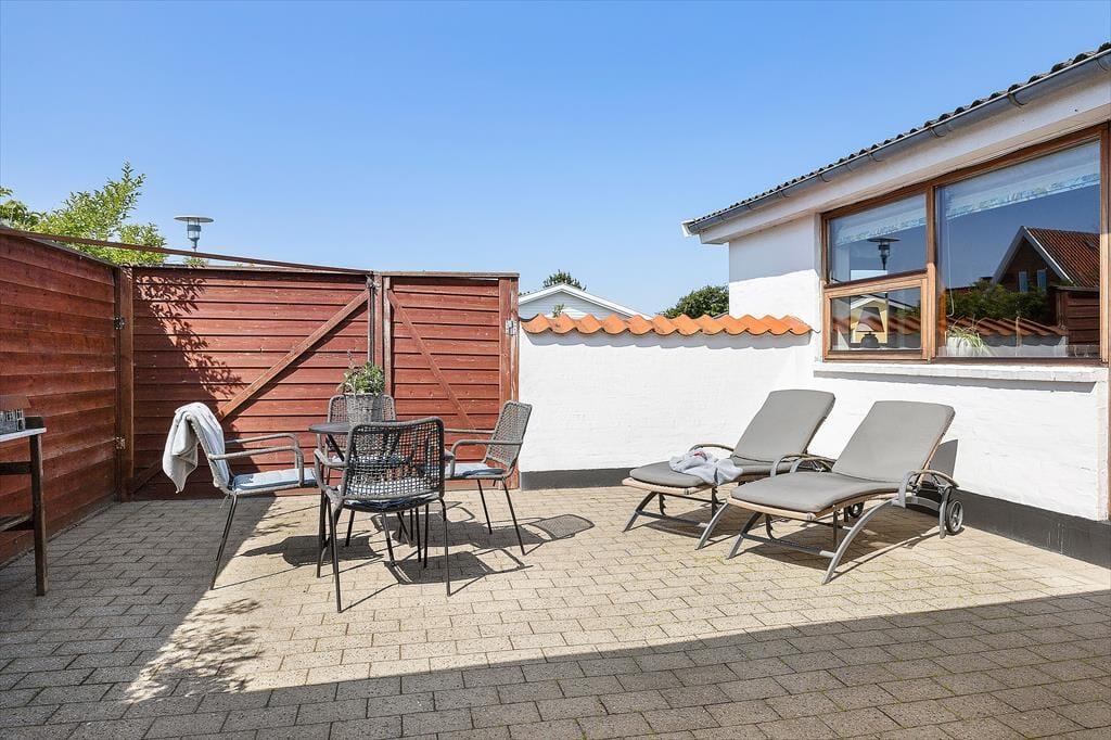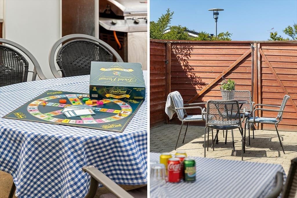 Udendørs venter jer en hyggelig og lukket gårdhave, der er som skabt til ferie. Her kan I starte dagen med en kop kaffe i solen eller tænde op i grillen og nyde aftensmaden under åben himmel. De gode lækroge gør det let at finde både sol og skygge, og den intime stemning indbyder til afslapning og nærvær. Gårdhaven er et oplagt samlingspunkt for hele familien – uanset om I spiller kort, læser bøger, leger med børnene eller bare læner jer tilbage og nyder den skagenske atmosfære.
