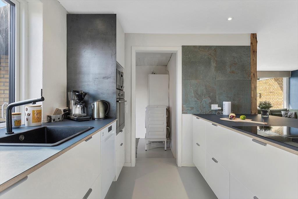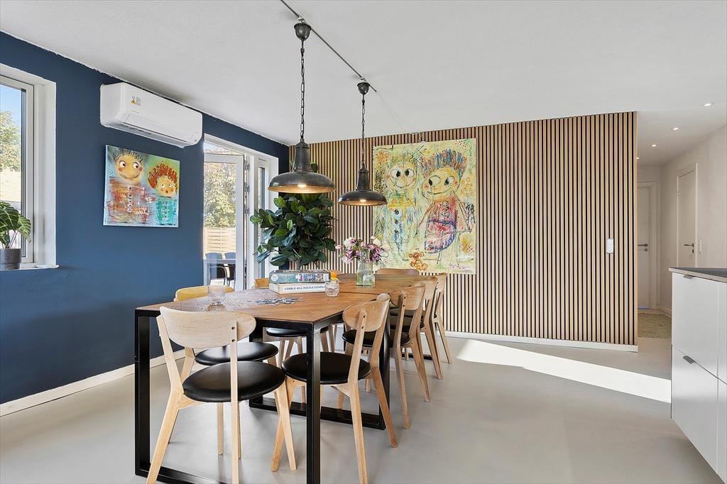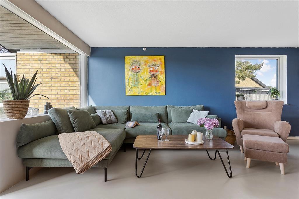 Indenfor mødes du af en lys og venlig atmosfære, som straks indbyder til afslapning. Det store vinduesparti i stuen lukker dagslyset ind og skaber en skøn forbindelse mellem ude og inde, så du hele tiden mærker den særlige stemning, som hører Skagen til. De stilrene rammer giver rummet et let og luftigt præg, mens den hyggelige indretning gør det nemt at slappe af. Her kan du forestille dig de lange sommeraftener, hvor I samles om spisebordet til brætspil eller deler dagens oplevelser, før sofaen lokker med en god bog eller en film. Køkken og stue hænger naturligt sammen, så samtalerne kan fortsætte på tværs af aktiviteter, og huset rummer plads nok til, at alle kan finde deres favoritspot – hvad enten det er til samvær eller et stille øjeblik for sig selv.