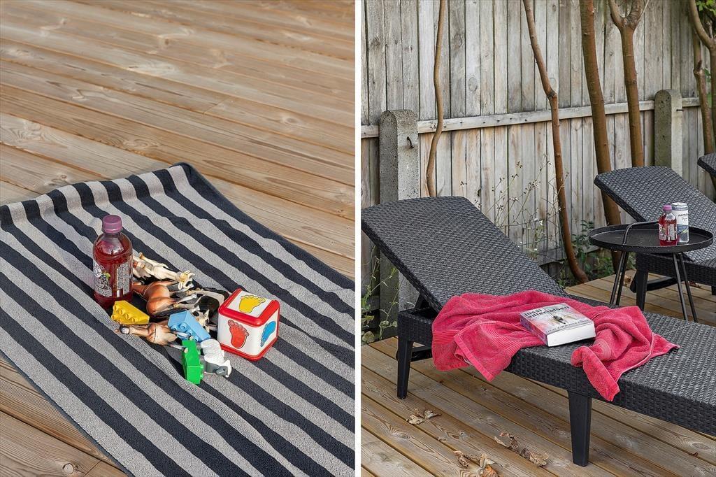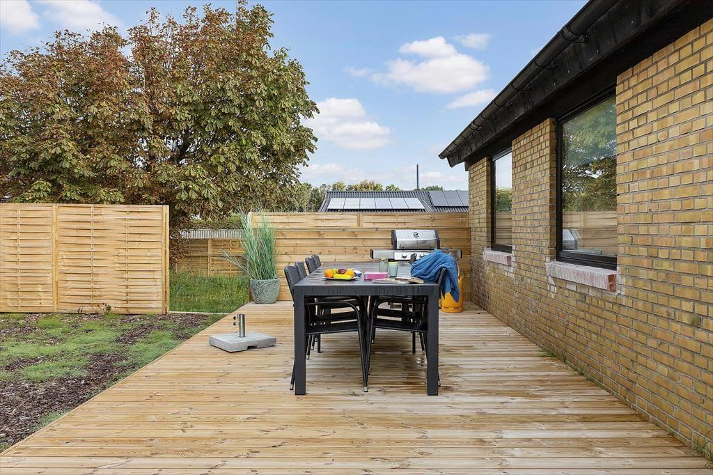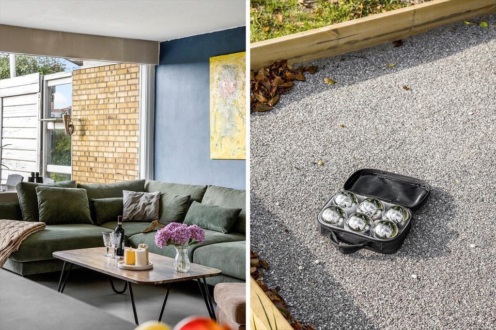 Udenfor fortsætter ferieidyllen i den lukkede have, hvor både store og små kan finde noget at glæde sig til. Terrasserne byder på solrige pletter og skyggefulde kroge, så du kan nyde din morgenkaffe i fred og ro, servere frokosten under åben himmel eller grille aftensmaden, mens duften breder sig i sommeraftenen. Haven er ideel til leg – her er legeredskaber til børnene og en petanquebane, som garanterer gode timer for de voksne. Har du hund med på ferie, kan du også roligt slippe den løs i de trygge rammer, hvor græsplænen giver masser af plads til leg og løb. Når solen går ned, er det oplagt at trække tæppet om skuldrene, tænde stearinlys og nyde den fredelige stemning, der kun findes i en have på en lys sommeraften i Nordjylland.