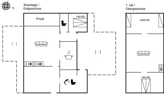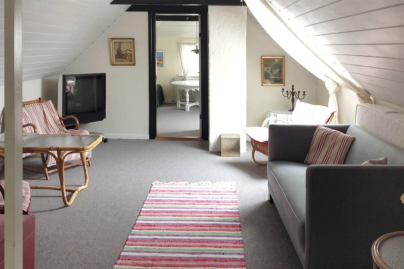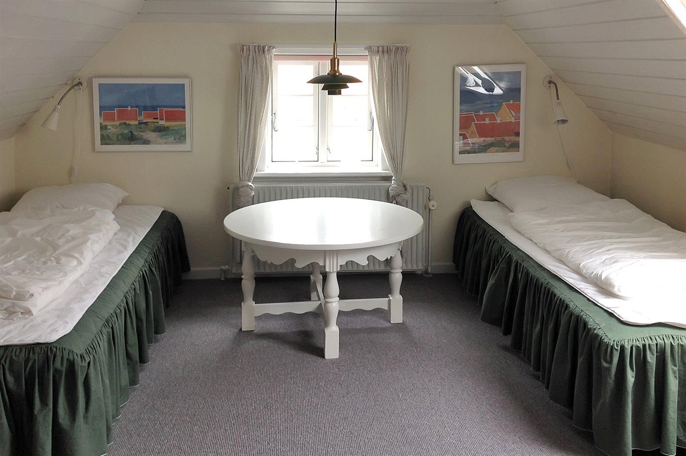 Der er i alt 3 soveværelser. Sovepladserne fordeler sig på: 4 sovepladser i dobbeltsenge. 2 sovepladser i enkeltsenge.