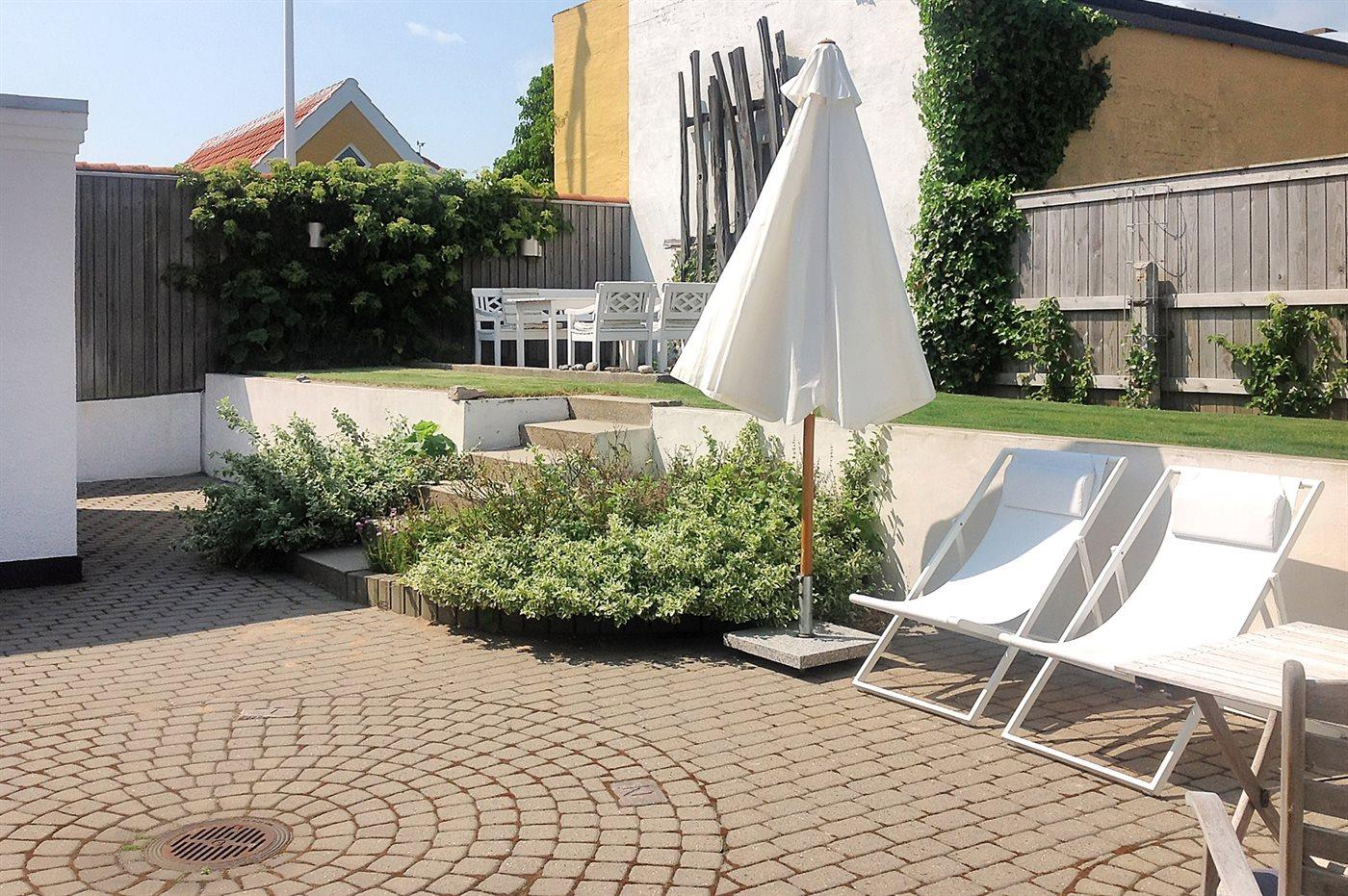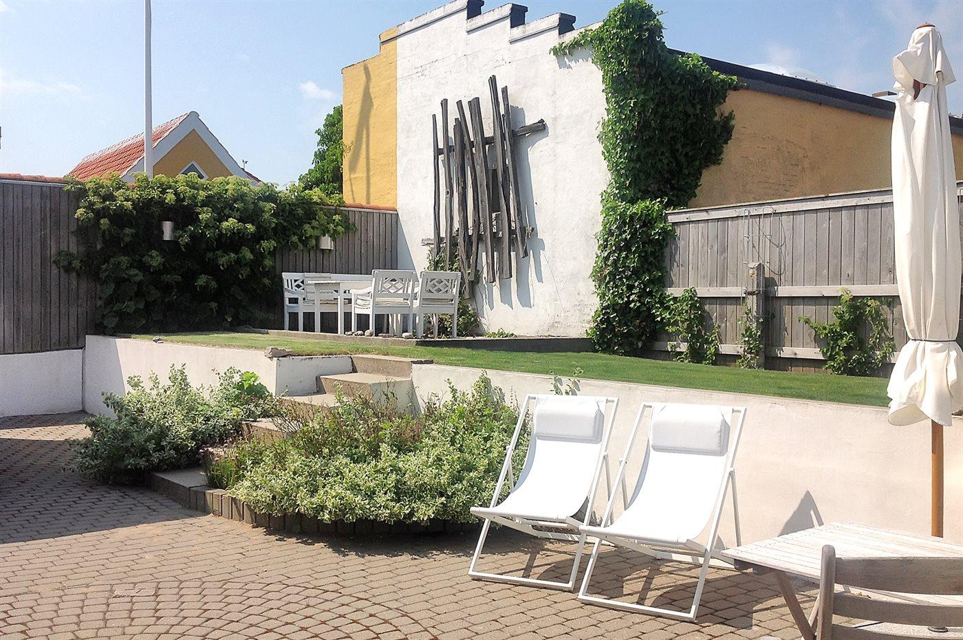 Klassisk skagenshus beliggende centralt i Skagen - kun en lille gåtur til havn og centrum. Huset ligger tilbagetrukket på en dejlig velplejet havet med flere skønne terrasser og hyggekroge omkring huset.
