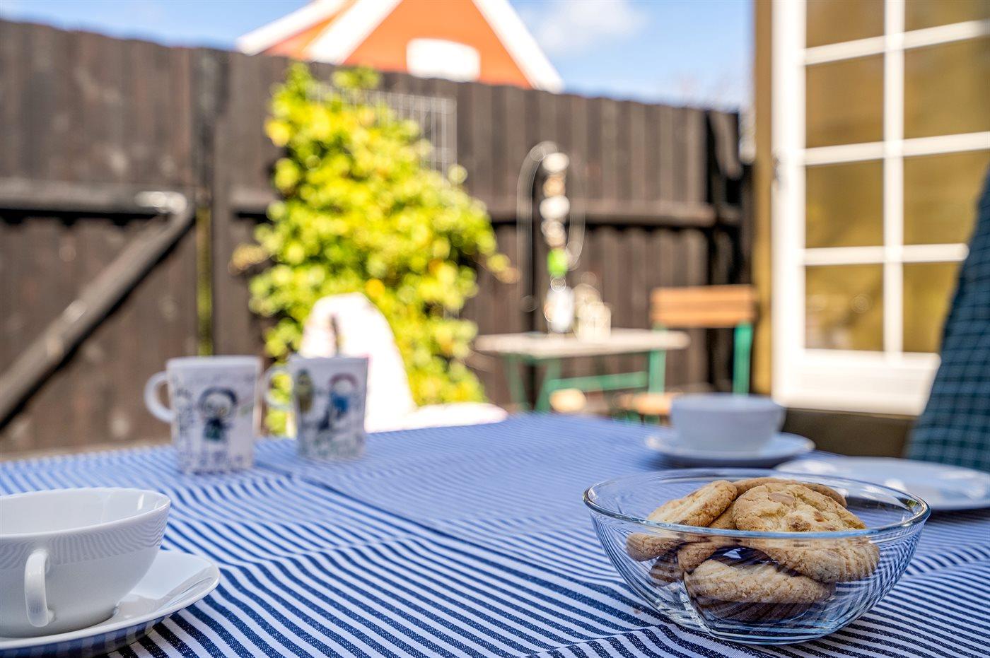 Lys og charmerende ferielejlighed i klassisk skagenshus tæt på strand, havn og byens centrum.