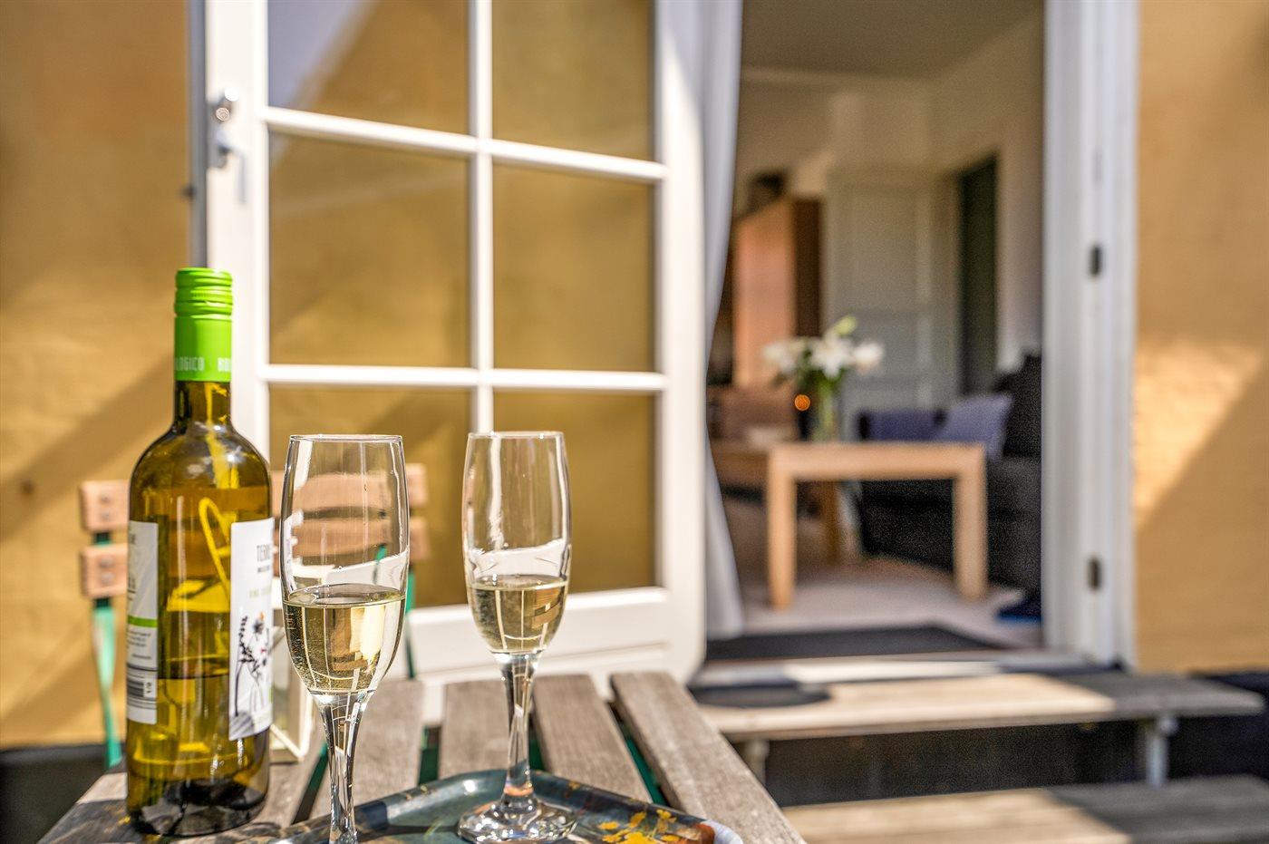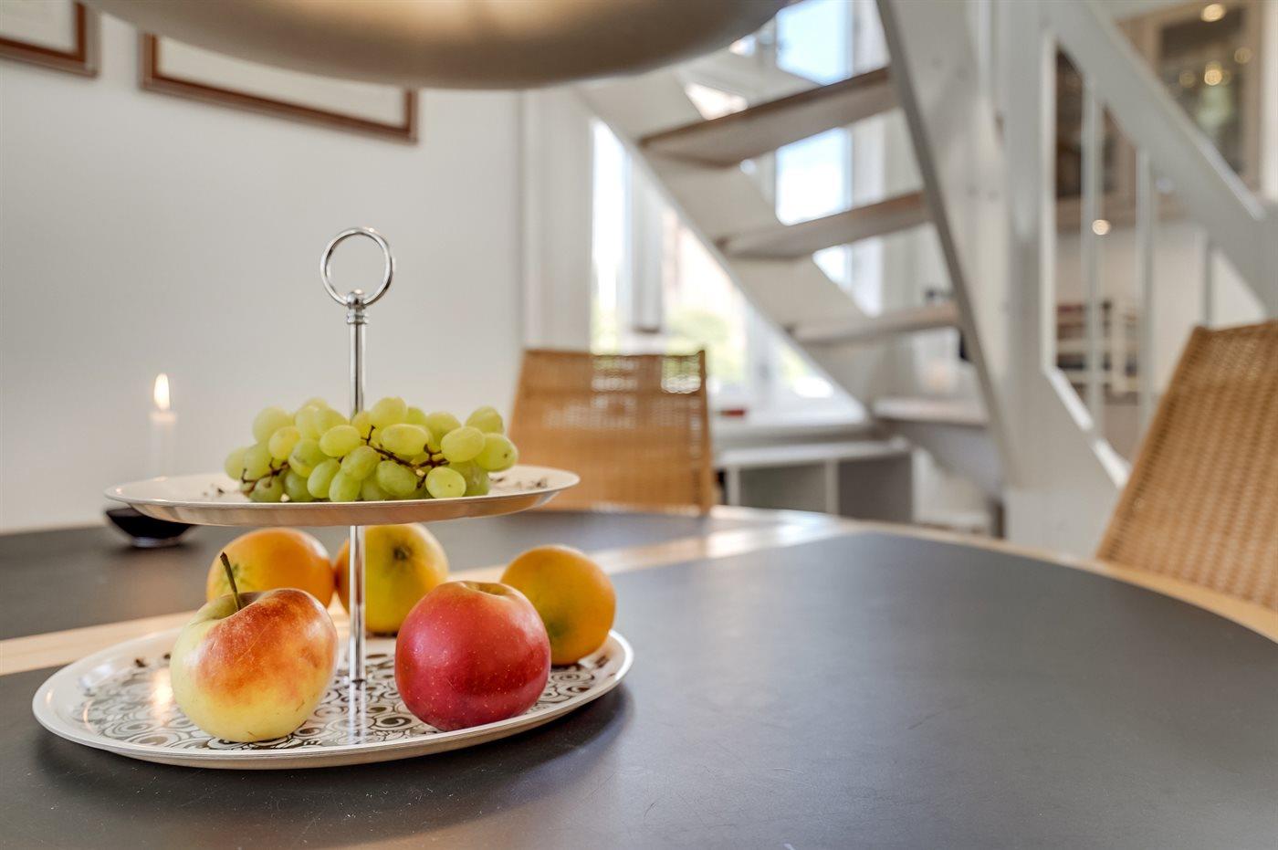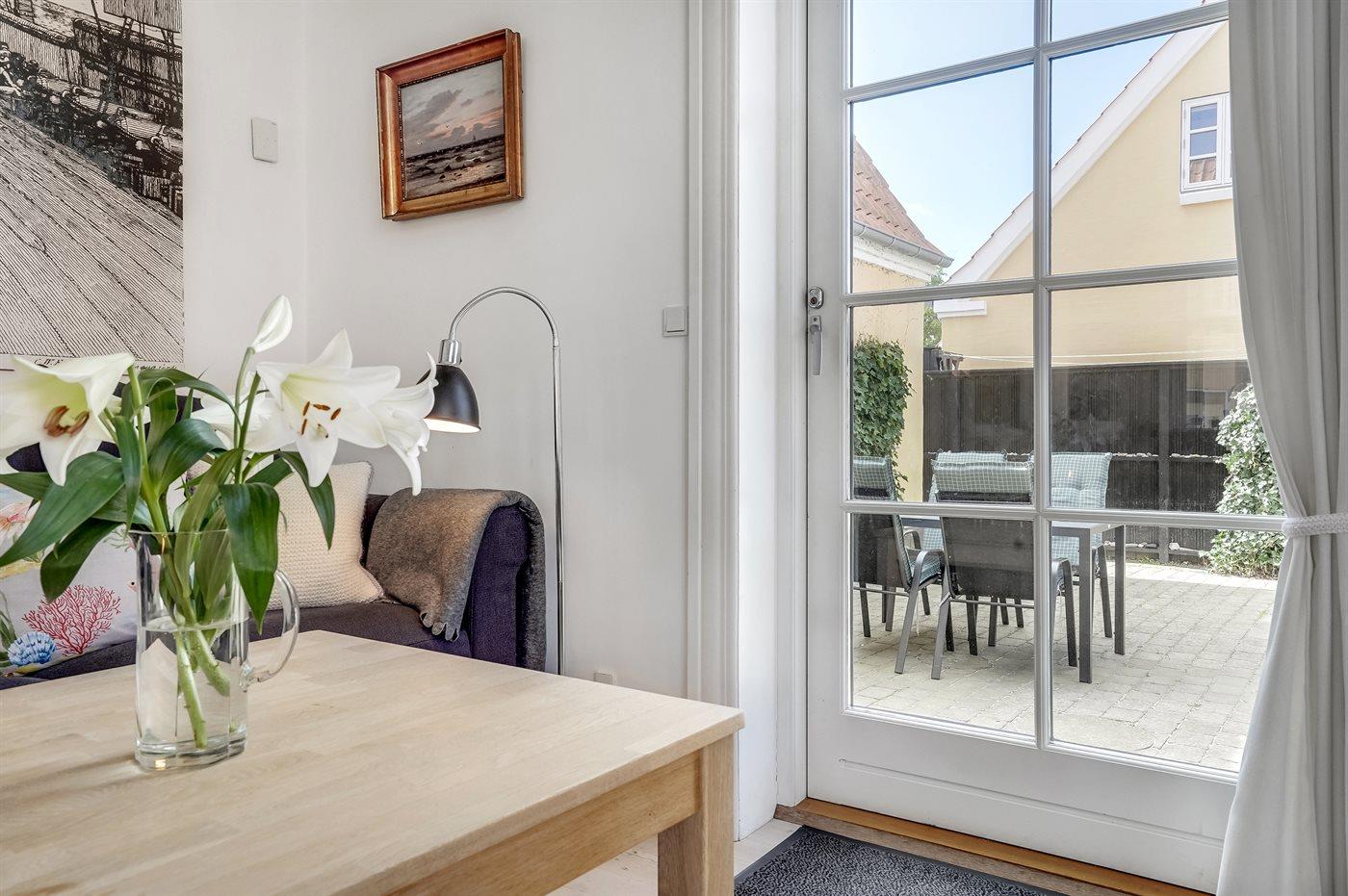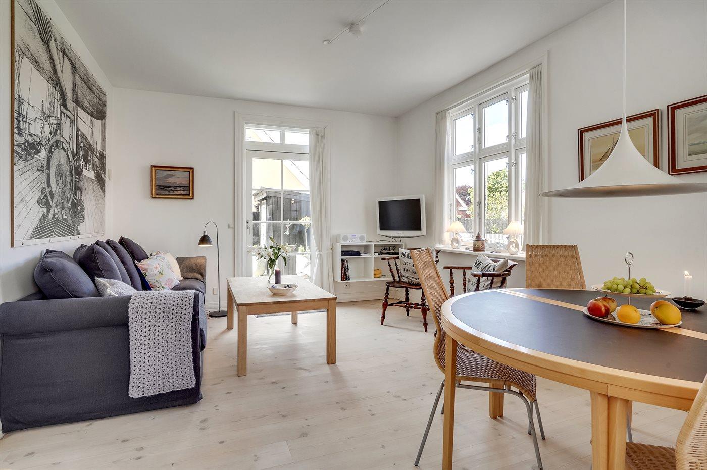 Skøn og lyst indrettet ferielejlighed i klassisk skagenshus beliggende centralt i Skagen tæt på centrum, havn, strand og byens mange seværdigheder.