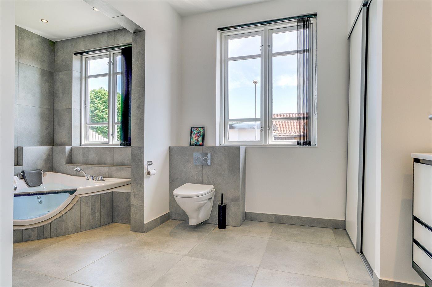 Der er 2 badeværelser med bruseniche og 2 toiletter. Der er gulvvarme på 2 badeværelser.