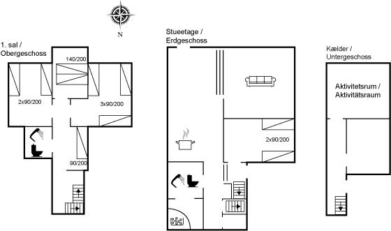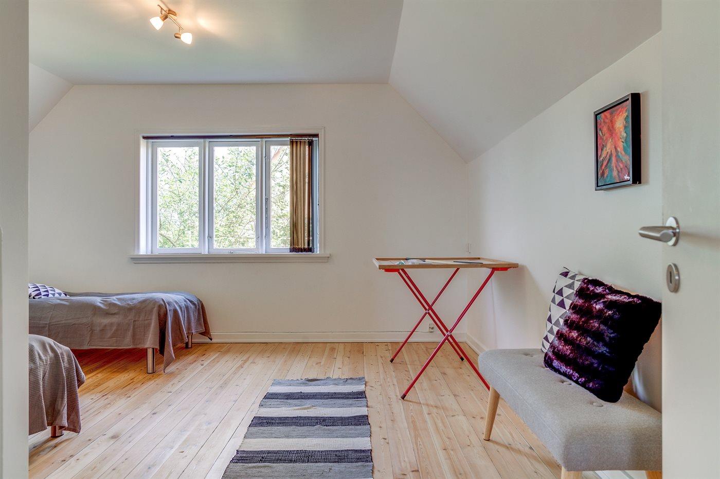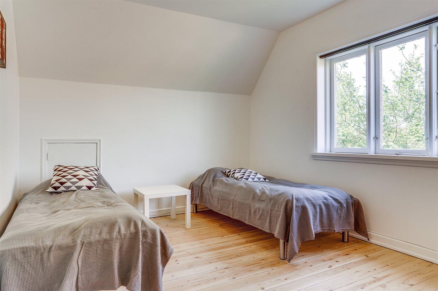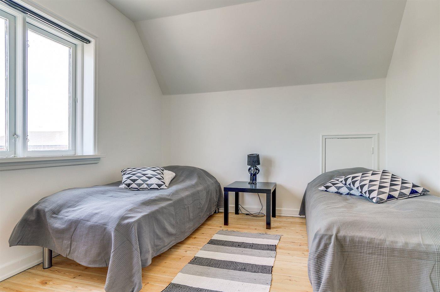 Der er i alt 4 soveværelser. Sovepladserne fordeler sig på: 2 sovepladser i dobbeltseng. 8 sovepladser i enkeltsenge. Bemærk, at den ene enkeltseng befinder sig på reposen på 1. sal. Derudover er der 1 stk. barneseng.