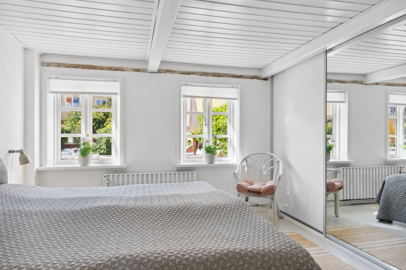 Der er i alt 3 soveværelser. Sovepladserne fordeler sig på: 4 sovepladser i dobbeltsenge. 2 sovepladser i enkeltsenge. Derudover er der 1 stk. barneseng.