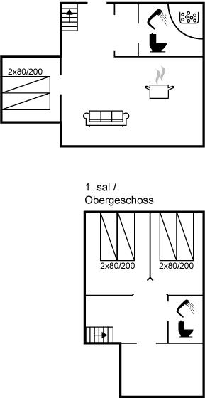 Sommerhuset egner sig til 8 personer samt 1 barn op til 3 år. 2 af sovepladserne er kun egnet til større børn (4-11 år). Ferieboligen er på 110 m², er i 2 plan, og er bygget i 2005. Det er tilladt at medbringe 1 husdyr. Der er fjernvarme. Der er gulvvarme i stuen. Der er gulvvarme i alle klinkegulve. Der er gulvvarme i entréen. Ferieboligen har vaskemaskine. Der er gulvvarme i alrummet. Tørretumbler. Frysekapacitet på 60 liter. Der er desuden brændeovn. Til de små er der 1 stk. barnestol.