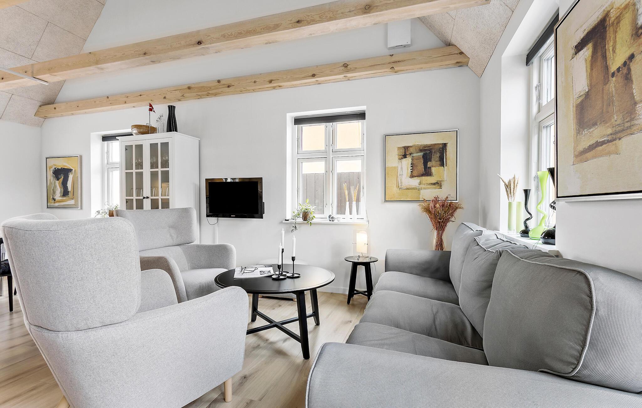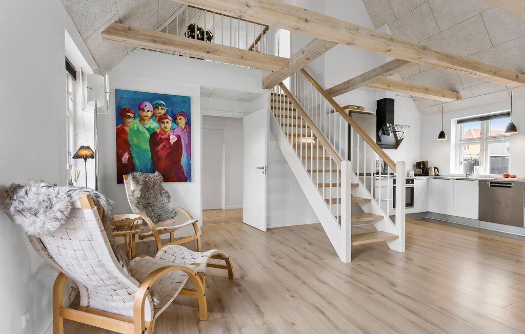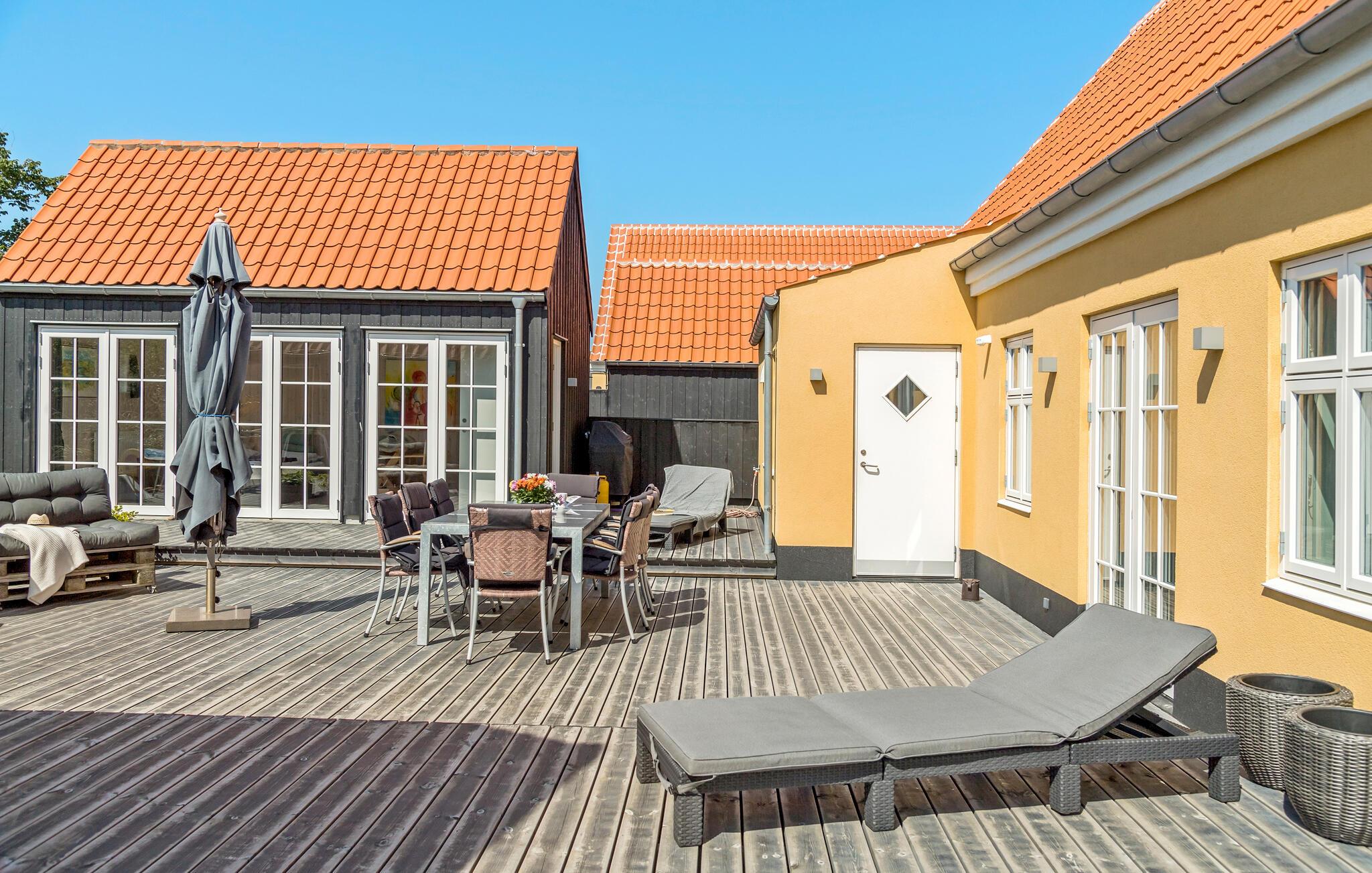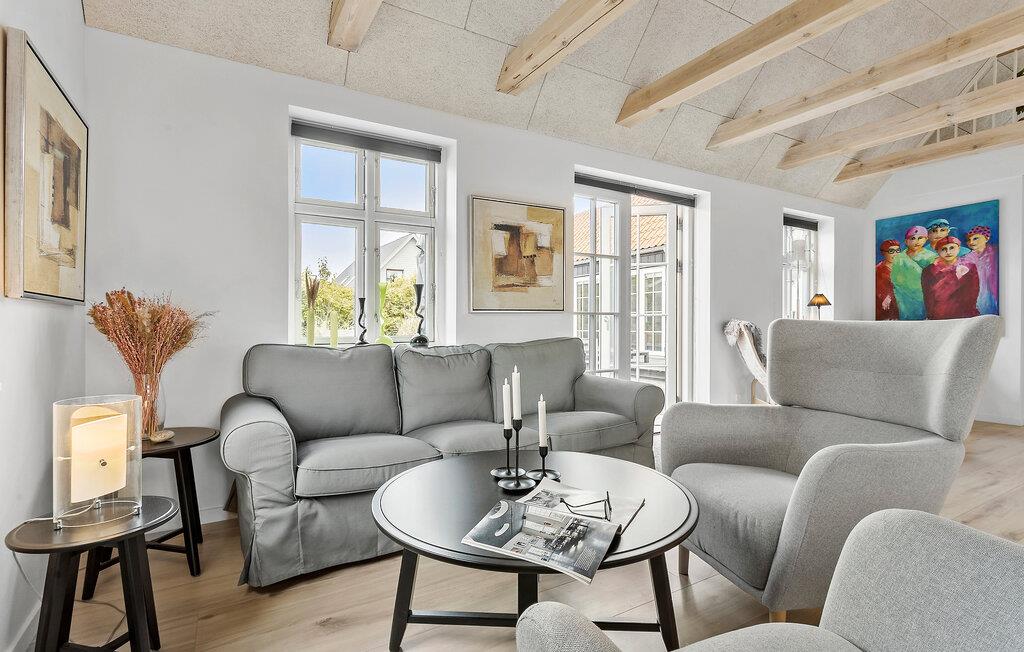 Velkommen til et dejligt område i Lille Skagen, hvor I kan se frem til en ferie med ro og komfort. Træd ind i det klassiske gule skagenhus og nyd de indbydende, lyse lokaler, som fordeler sig over to etager. Her er der alt, hvad I behøver til jeres feriedage. Byhusene ligger tæt på hinanden, men alligevel har I det helt for jer selv i den afskærmede gårdhave. Her får I jeres egen lille "gryde" til solskinsdagene, hvor I kan sætte jer med en kop kaffe og en god bog. Der er direkte adgang til terrasserne fra det hyggelige anneks og den lyse stue. Her kan I nyde freden og roen, husets moderne løsninger og det veludførte design. Bil er ikke nødvendigt, for I har kort gåafstand til det meste.