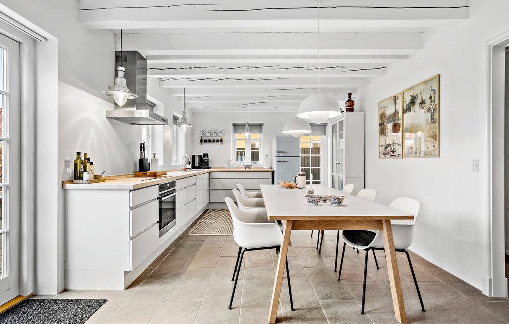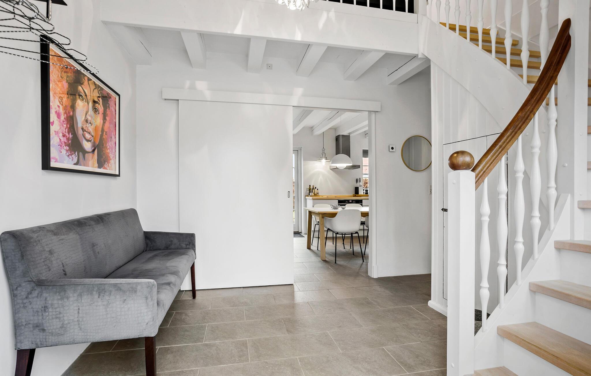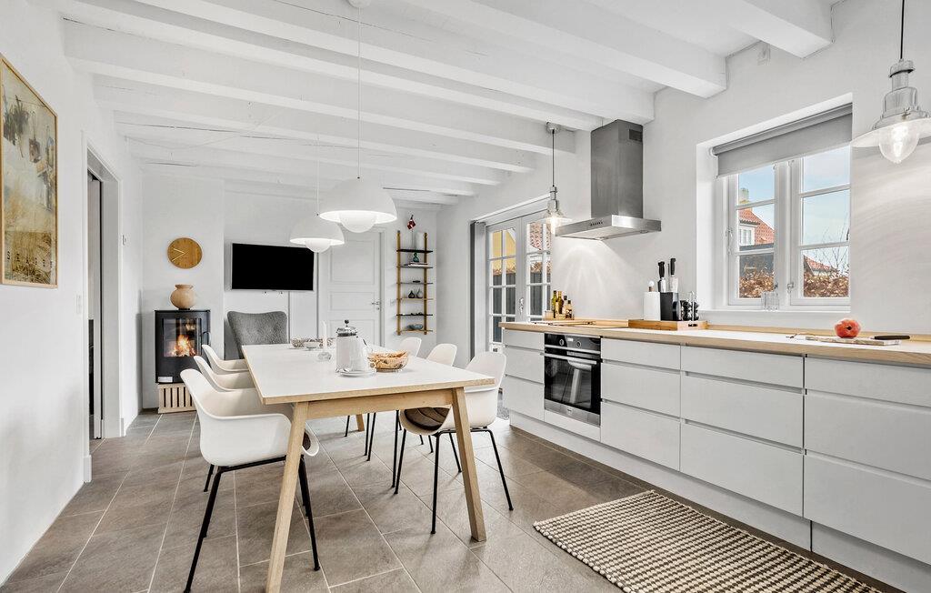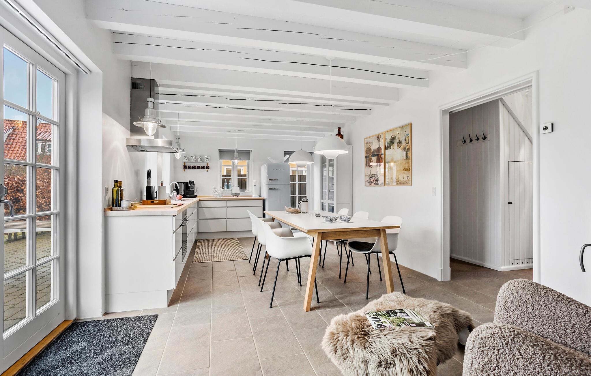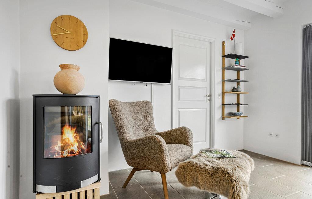 Oplev et afslappende ophold i dette charmerende feriehus, som forener ro og komfort. Den smagfulde indretning og det gennemtænkte udstyr gør jeres ferie uforglemmelig. Træd ind i jeres hus, der er lyst og moderne indrettet, med et åbent opholds- og spiseområde. Lav mad sammen i det åbne køkken med et rummeligt spisebord. Slap af i den hyggelige opholdsstue med brændeovn og fjernsyn, eller træk jer tilbage til overetagen, hvor endnu en opholdsstue med sofahjørne venter på jer. Og hold en afslappende pause i det lille spabad i badeværelset.