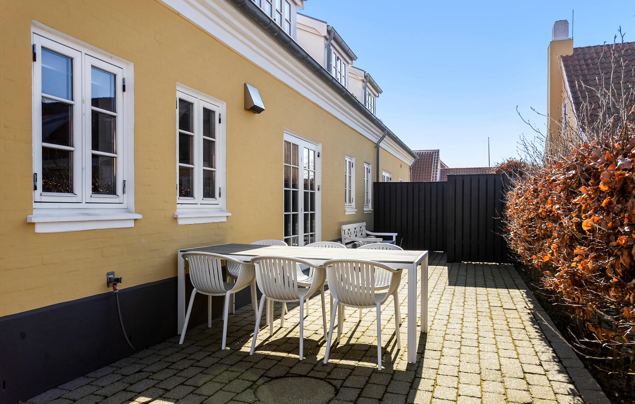 Tilbring solrige timer på den beskyttede terrasse lige foran huset. Nyd jeres morgenmad under åben himmel, eller afslut dagen med et glas vin i fredelige omgivelser. Terrassen er direkte tilgængelig fra køkken- og opholdsområdet og byder på havemøbler til afslappede stunder.