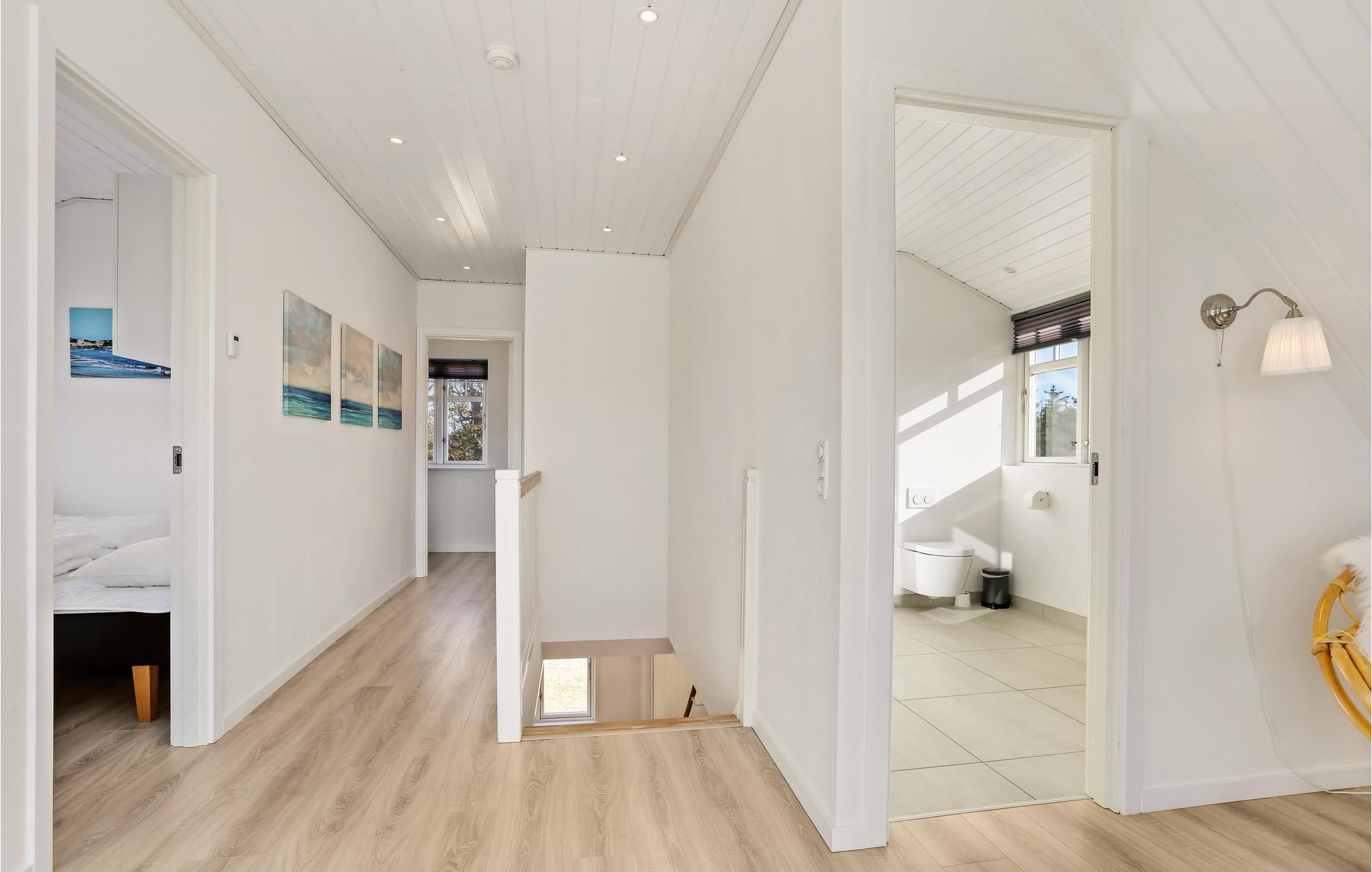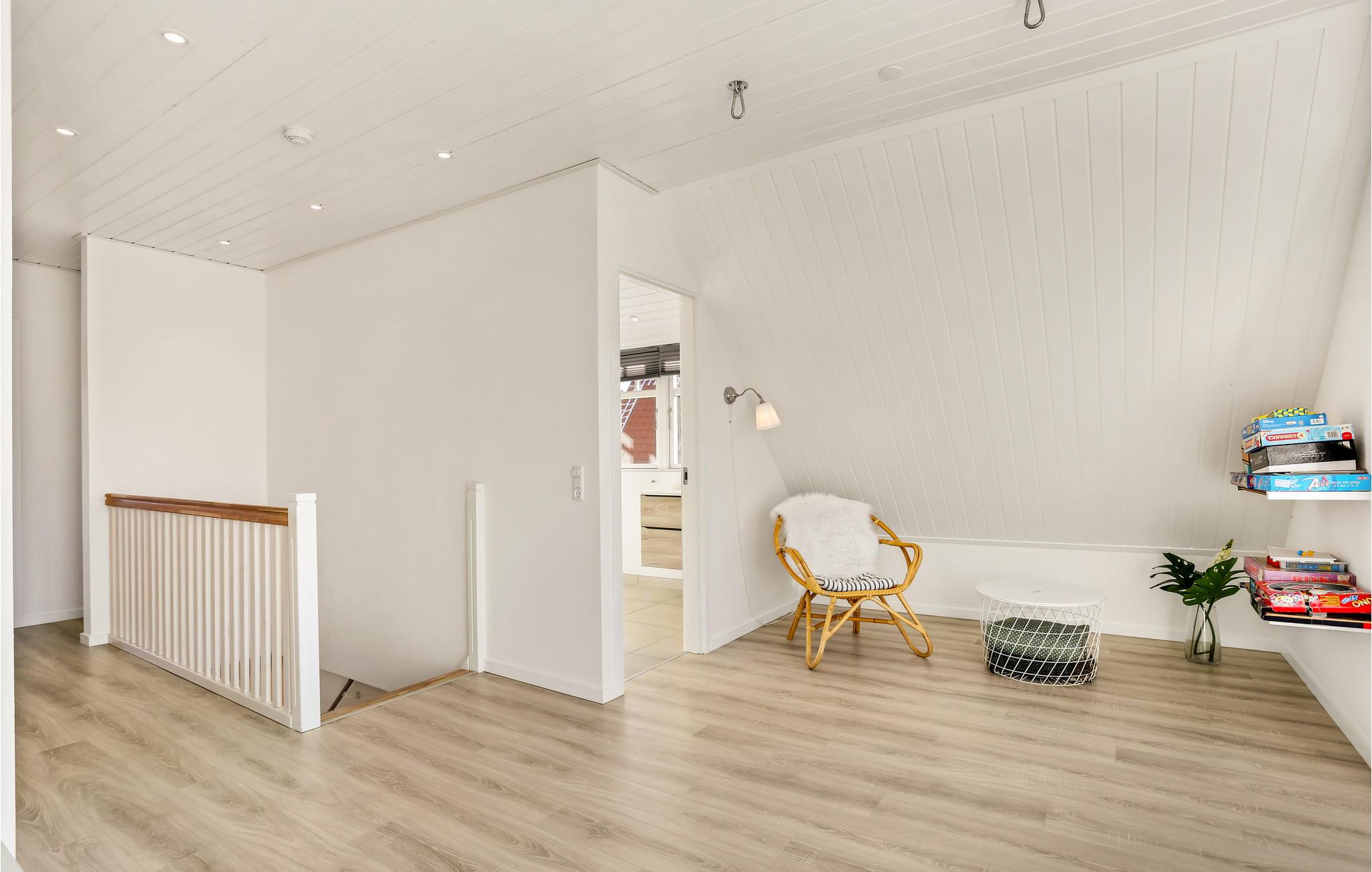 Dette smukke feriehus byder jer velkommen i udkanten af den nordligste by i Danmark. Det familievenlige hus er et sandt paradis. Det er designet til at I kan tilbringe masser af kvalitetstid i de lyse og indbydende opholdsrum, uanset om I leger, slapper af, laver mad eller slænger jer i sofaen. Opholdsstuen ovenpå er et dejligt sted for børnene at lege. I mellemtiden kan I nyde en kop kaffe på altanen.