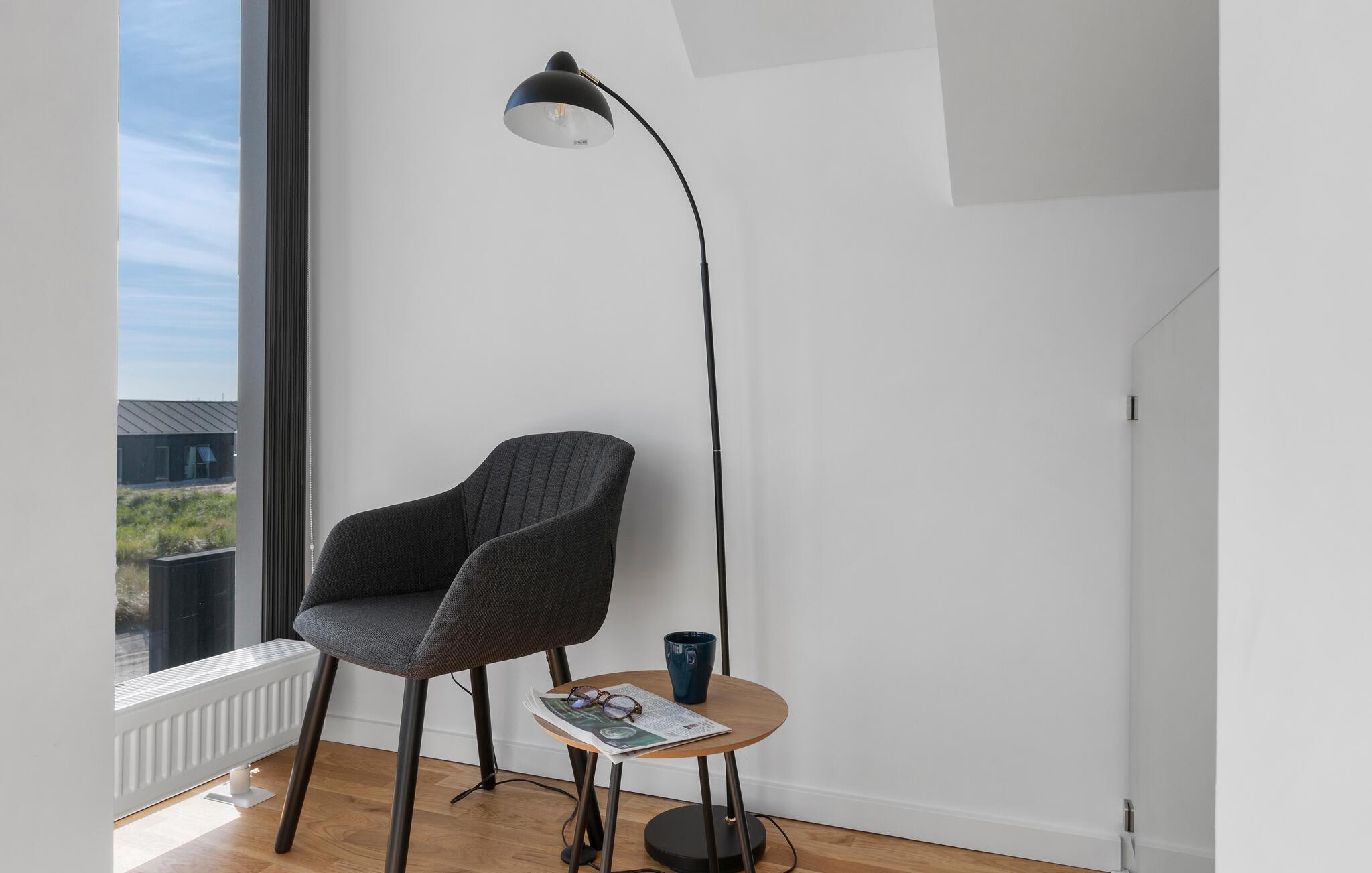 Moderne feriehus i Skagen med panoramaudsigt over klitter og hav.