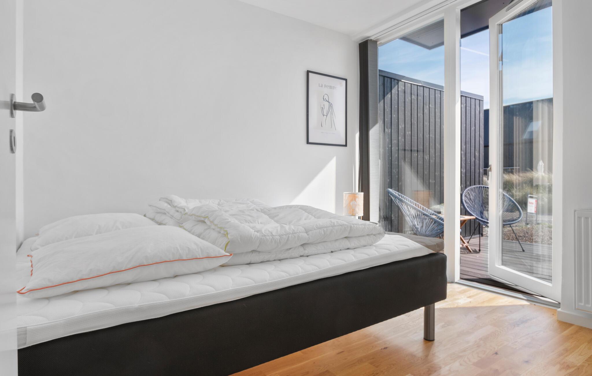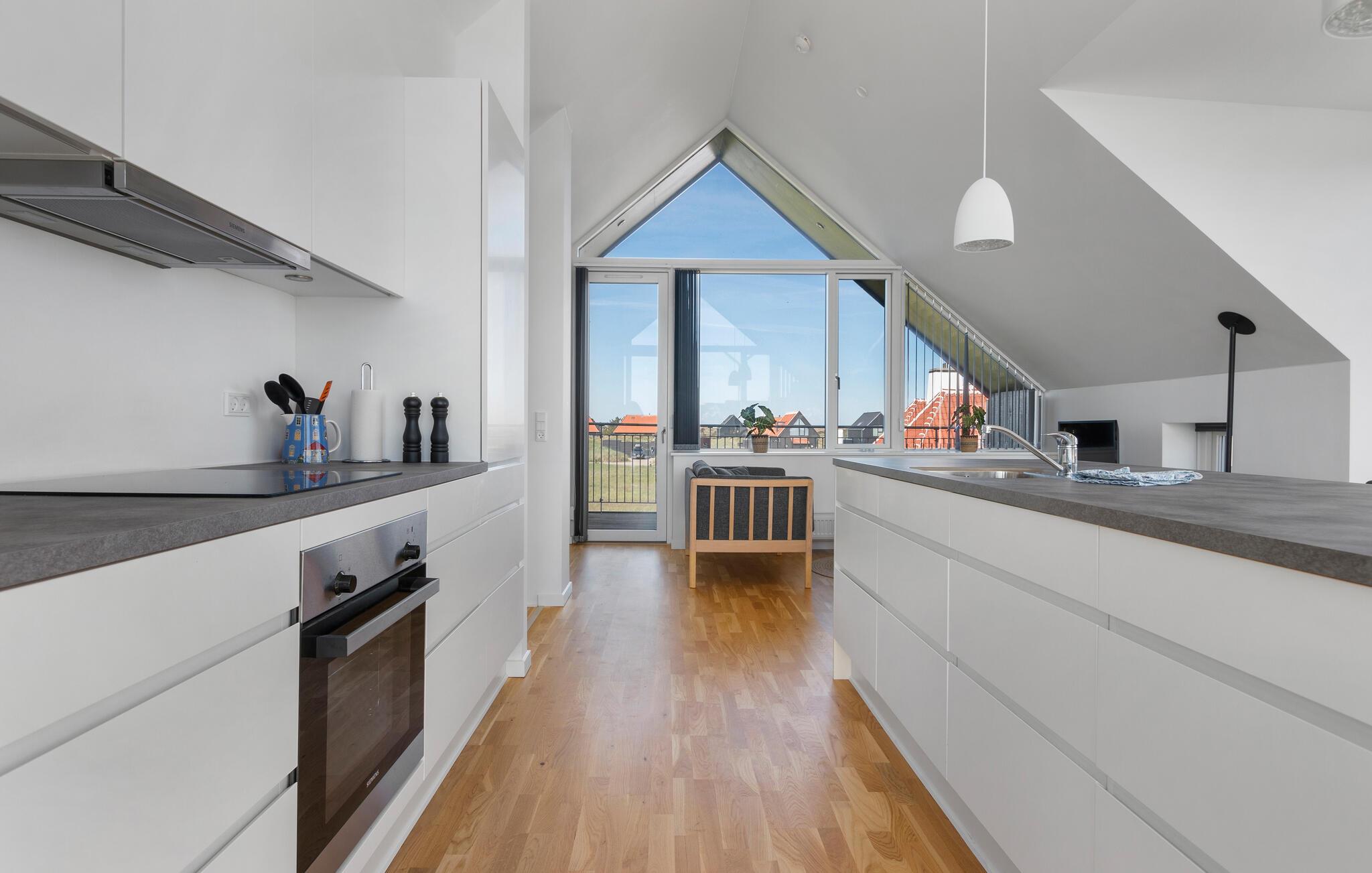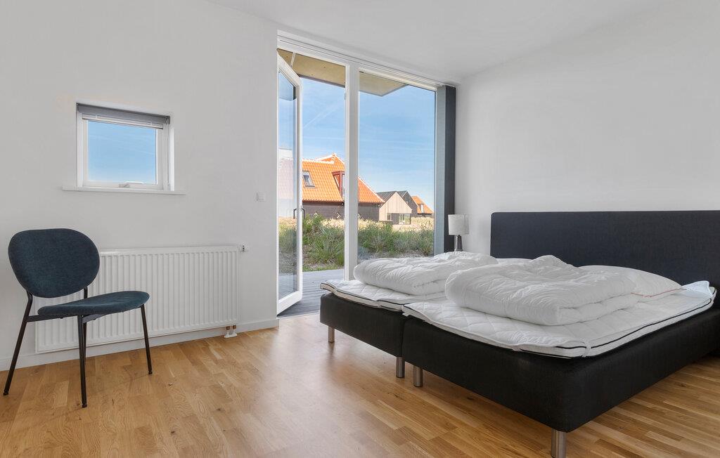 Velkommen til dette moderne hus, der ligger i et naturskønt område med udsigt over klitterne og Nordstranden, hvor I kan holde øje med skibsfarten på havet i løbet af dagen. Huset er flot indrettet over to etager; soveværelserne er i stueetagen, mens fælleslokalerne er på første sal, så I kan kræse om livretterne i det fuldt udstyrede køkken med en dejlig udsigt. Hvis vejret bider lidt, kan I tænde op i pejsen og nyde dens varme og knitren til brætspillene, og på de varme aftener, kan I nyde den sene aftensol på de en af altanerne eller terrasserne, der vender mod både øst og vest.