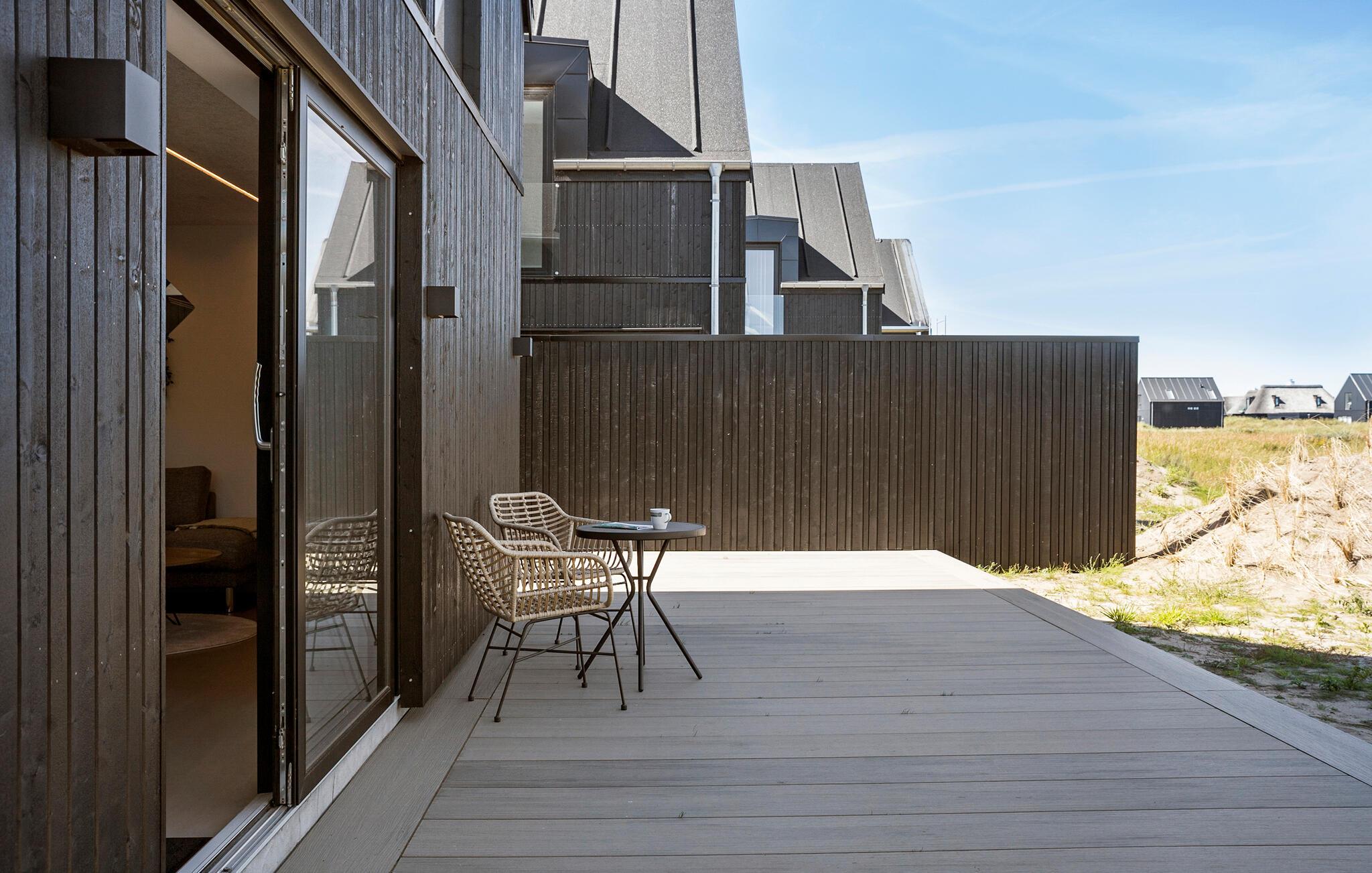 Moderne feriehus ved Skagen Strand med spabad, havudsigt og direkte adgang til stranden.