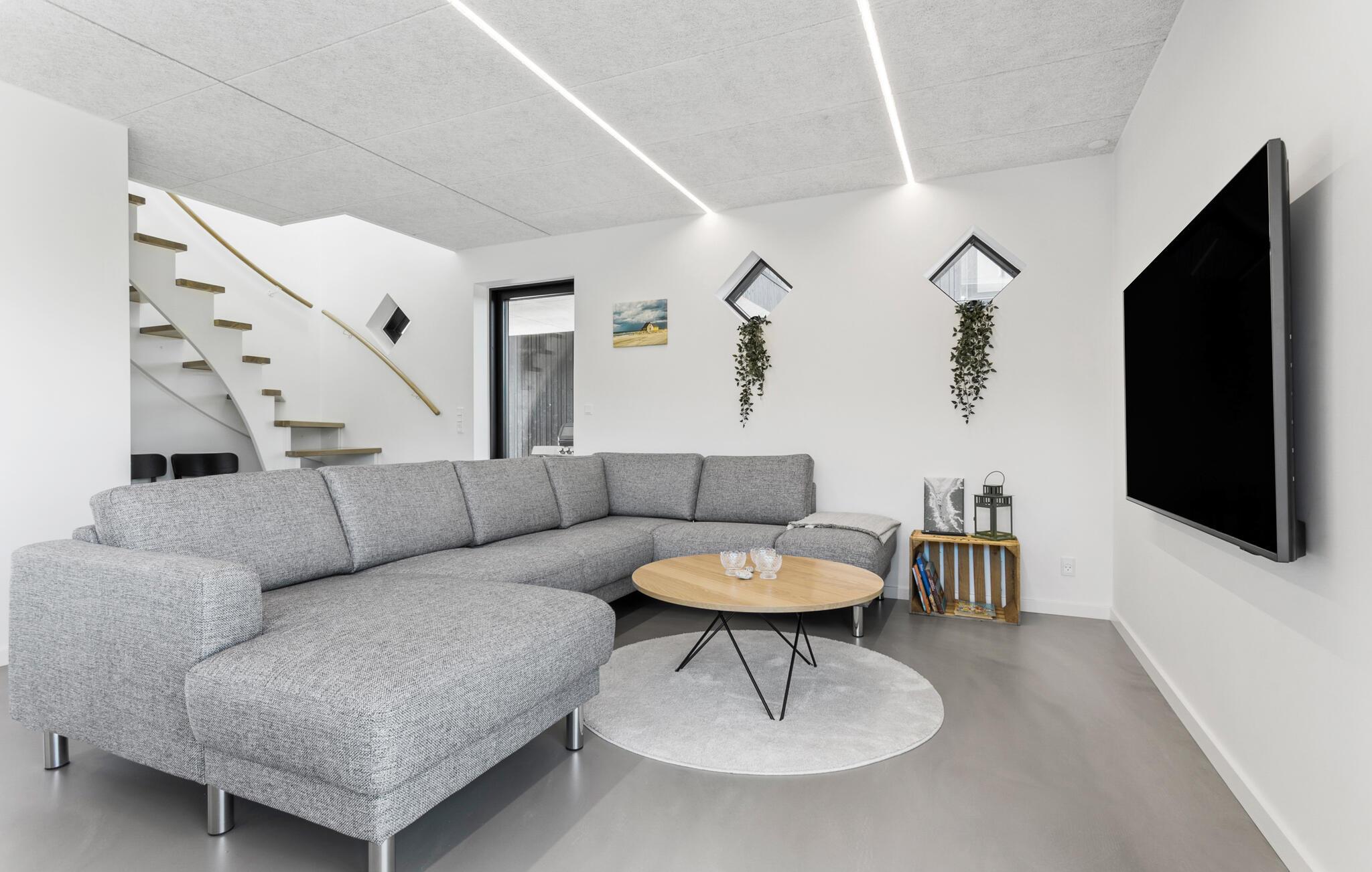 Der er lys, luft og lækre faciliteter i dette forrygende feriehus, som ligger direkte ud til et fredet område og har kig til havet fra øverste etage. På husets ene terrasse kan I læne jer tilbage i et dejligt spabad, mens den anden terrasse giver jer en eksklusiv udsigt over det fantastiske område helt ud til havet. Glæd jer til afslappende stunder under åben himmel og nyd dagene med solbadning, en lille læsepause eller en hyggelig grillmiddag med familien.