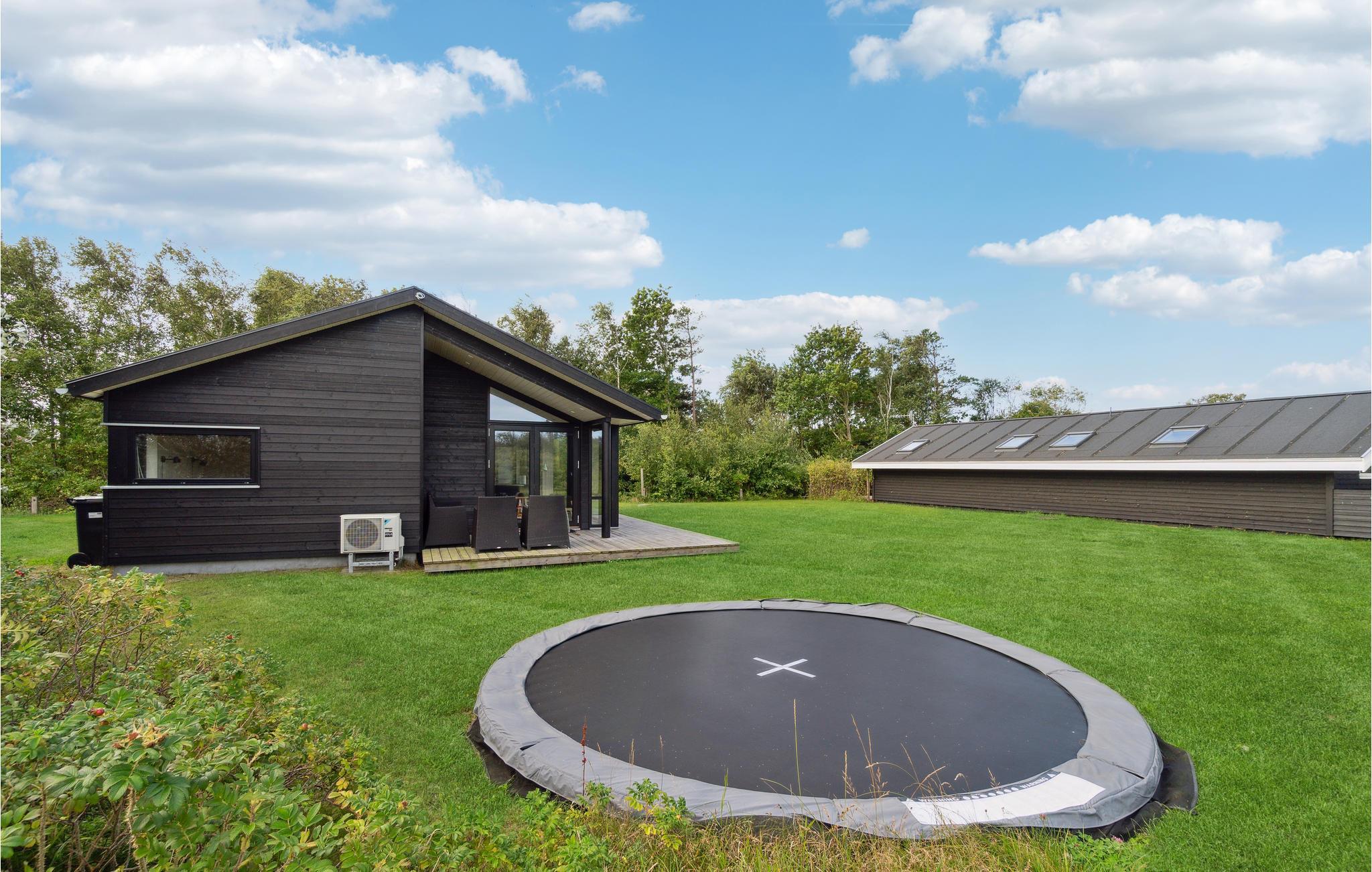Moderne feriehus i Skagen med panoramaudsigt, terrasse og trampolin for afslappende ferie i naturskønne omgivelser.