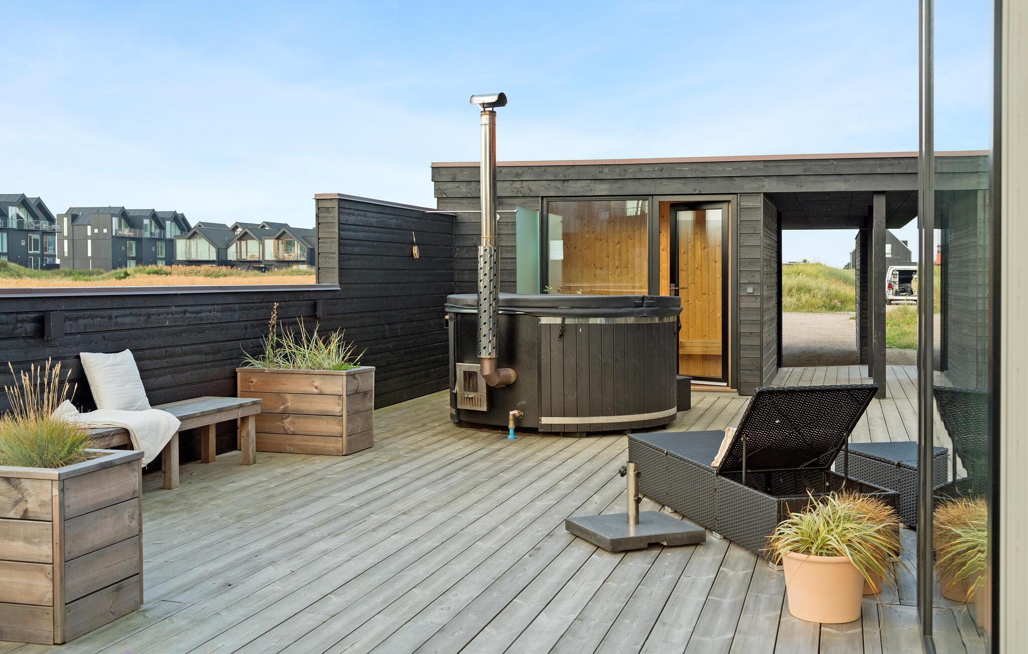 Luksuriøst feriehus ved Skagen Strand med wellness, havudsigt og moderne faciliteter.
