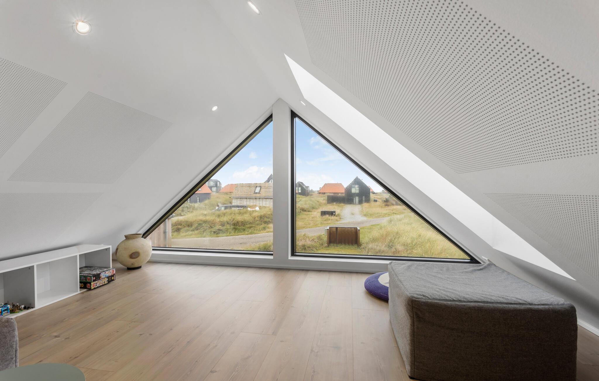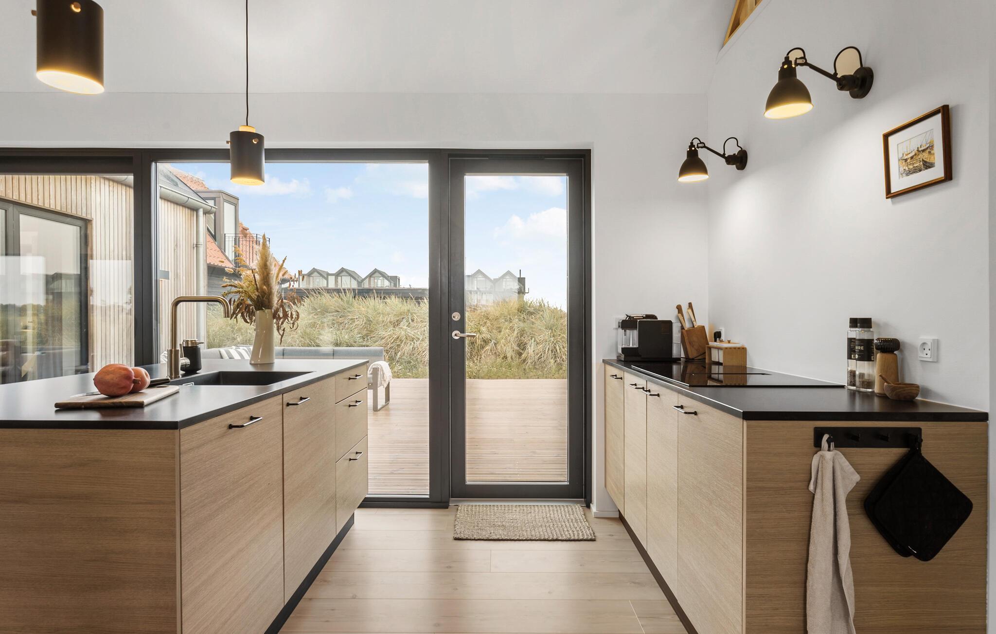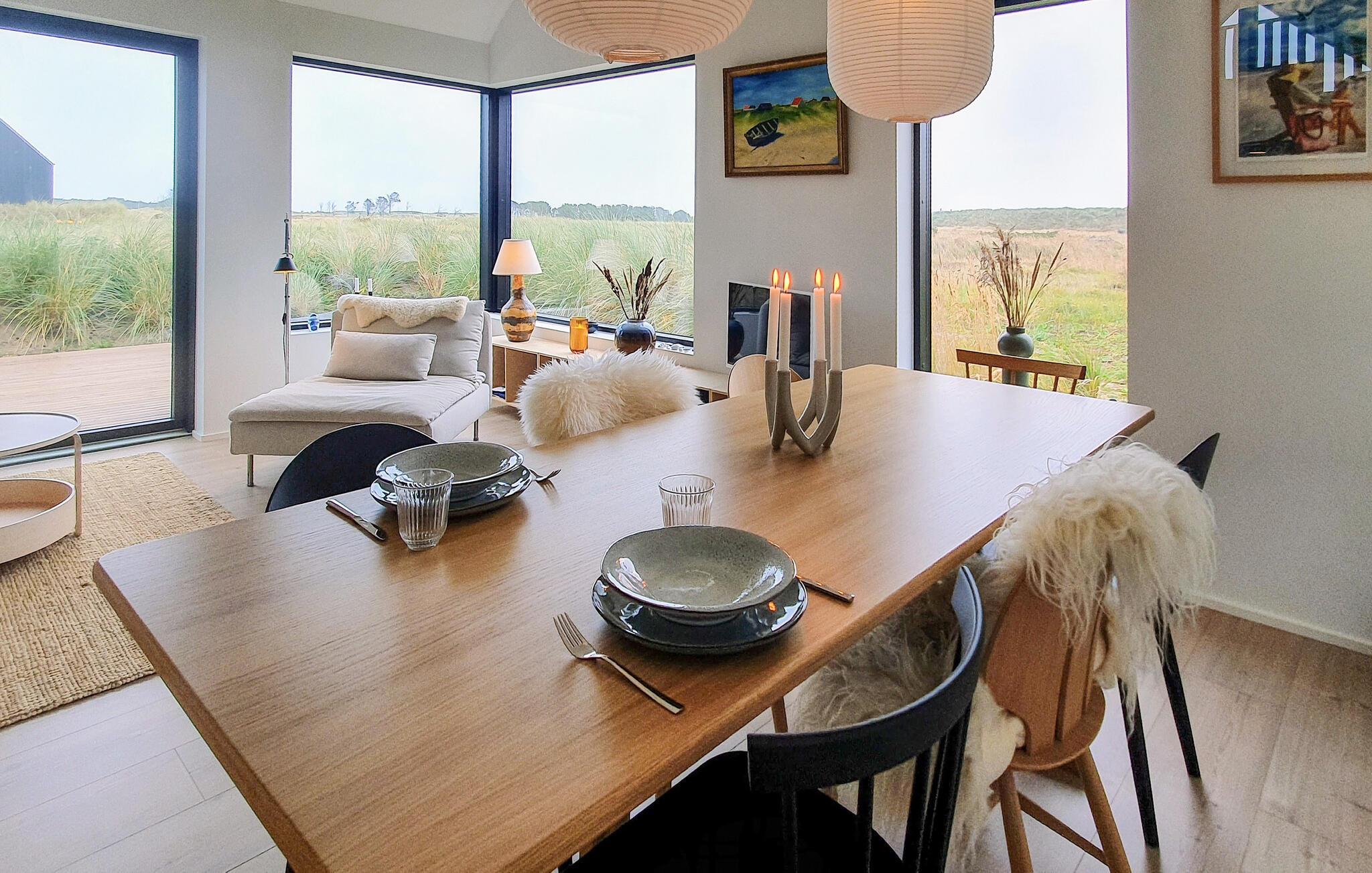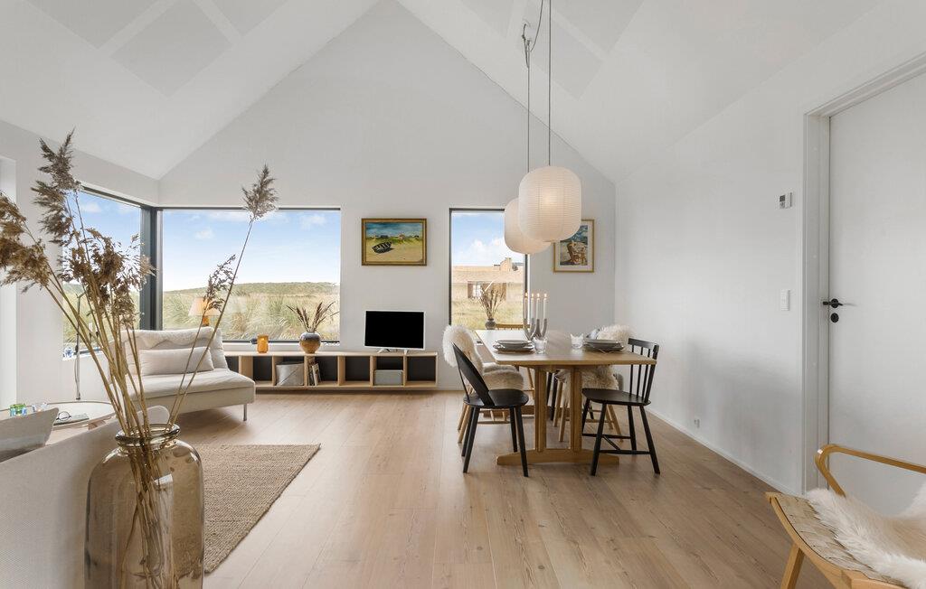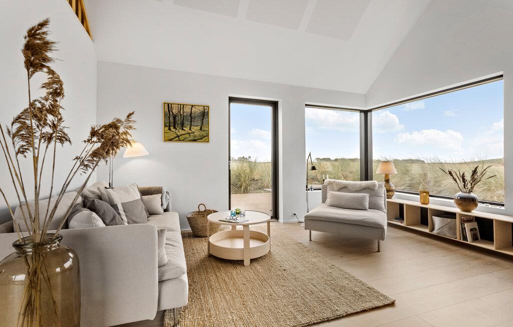 Velkommen på toppen af Danmark! Her kan I fylde feriedagene med hyggelige aktiviteter og velfortjent afslapning. Dette sommerhus er bygget i kvailitetsmaterialer og er lyst, personligt og smagfuldt indrettet. Der er loft til kip, samt en stor opholdshems hvorfra der er en skøn udsigt. Fra stuen og køkkenet er der direkte udsigt til det ugenerte klitlandskab, samt kig til Vesterhavet. Find sammen til dagens måltider og hyggestunder i de skønne fælles rammer, hvor spisebordet har direkte udsigt til klitlandskabet. Senere kan I sætte jer til rette med brætspil og gode bøger i sofaen.