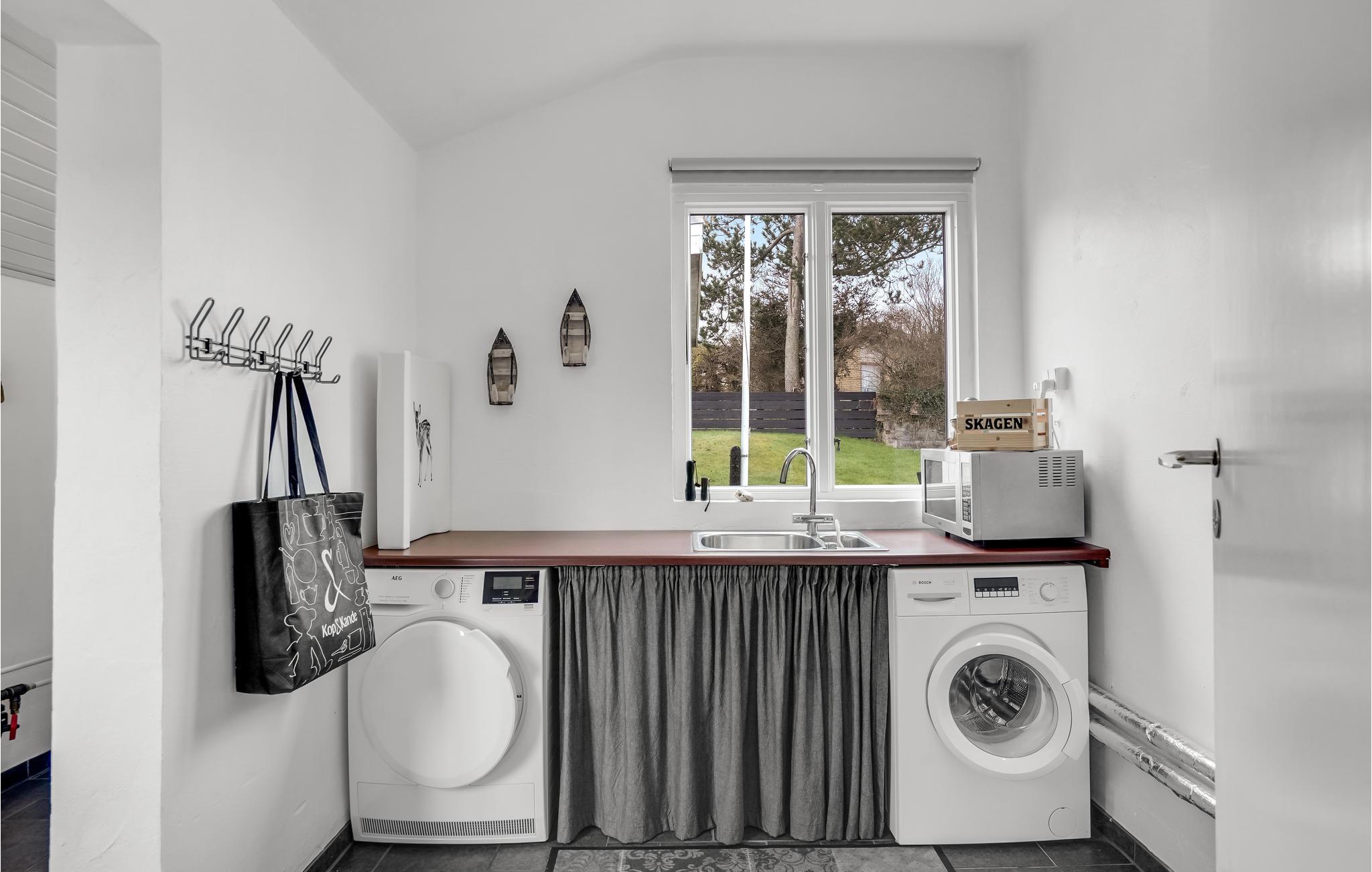 Gør jer virkelig komfortable i dette attraktive feriehus i enhver sæson. 4 soveværelser og 2 badeværelser byder jer velkommen her, så sommerhuset kan rumme 8 personer, og familiens kæledyr er også velkomne. I vil føle jer hjemme i de lyse og smagfuldt indrettede værelser, mens I kan tilberede lækre måltider i det moderne køkken.