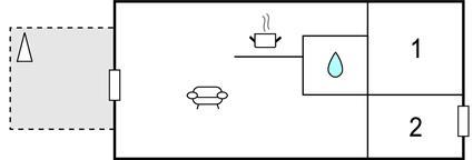 Badeværelse (nr. 1) - WC. Varmt og koldt vand. Bruser