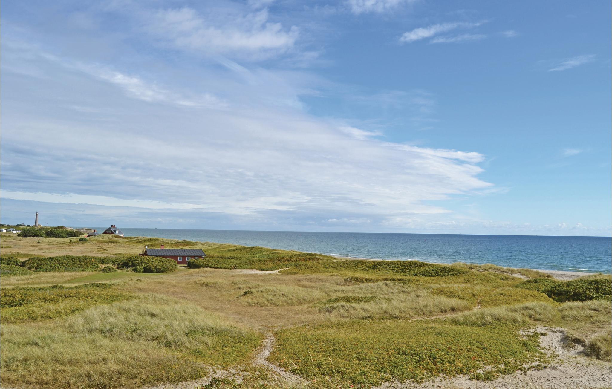 Direkte ved Skagen Sønderstrand og det ikoniske Vippefyr ligger dette hyggelige sommerhus. Huset ligger kun ca. 30 meter fra den flotte sandstrand, så når I sidder på terrassen, kan I høre bølgernes beroligende skvulpen. Huset er udstyret med pæne og komfortable møbler. Her findes 2 soveværelser med plads til i alt 6 gæster. Med denne beliggenhed kan I næsten ikke bo bedre ved Skagen. I har byens mange spændende attraktioner ligger indenfor gåafstand. Besøg havnen en tidlig morgen og mærk hvordan det summer af aktivitet. Byens gågade med gode butikker og spisesteder er et besøg værd på alle årstider. På Skagens mange museer bliver byens rige historie levendegjort, bl.a. gennem de smukke kunstværker af de berømte Skagensmalere. Grenen og den helt særlige natur tiltrækker i tusindevis af turister hver eneste sæson.