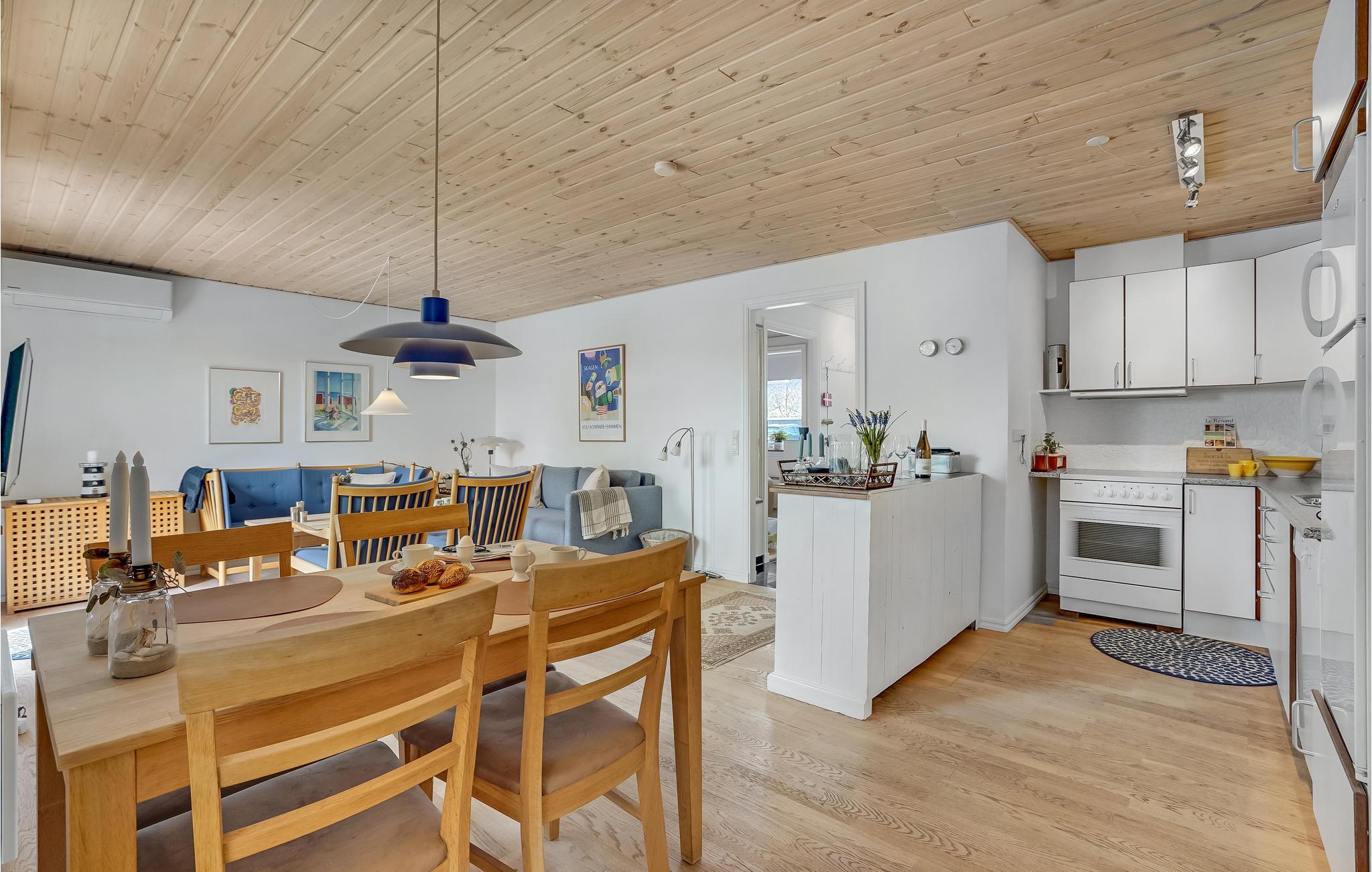 Der er lagt op til nogle forrygende dage på toppen af Danmark. Her bliver dette velindrettede rækkehus en god base, hvor I kan lade op mellem alle de spændende aktiviteter, der venter på jer. I kan se frem til en masse gode faciliteter. Den hyggelige stue med flot trægulv vender mod syd og har et skønt lysindfald. På sommerdagene kan I nyde dagens måltider udendørs på den åbne terrasse. Find jer godt til rette på liggestolene efter morgenmaden med en lydbog eller podcast i ørerne.