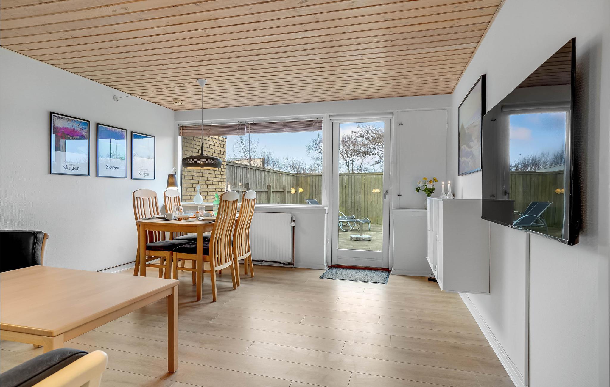 Hyggeligt enderækkehus i Skagen by med indhegnet have og moderne faciliteter, tæt på centrum og fælles vaskemaskine.
